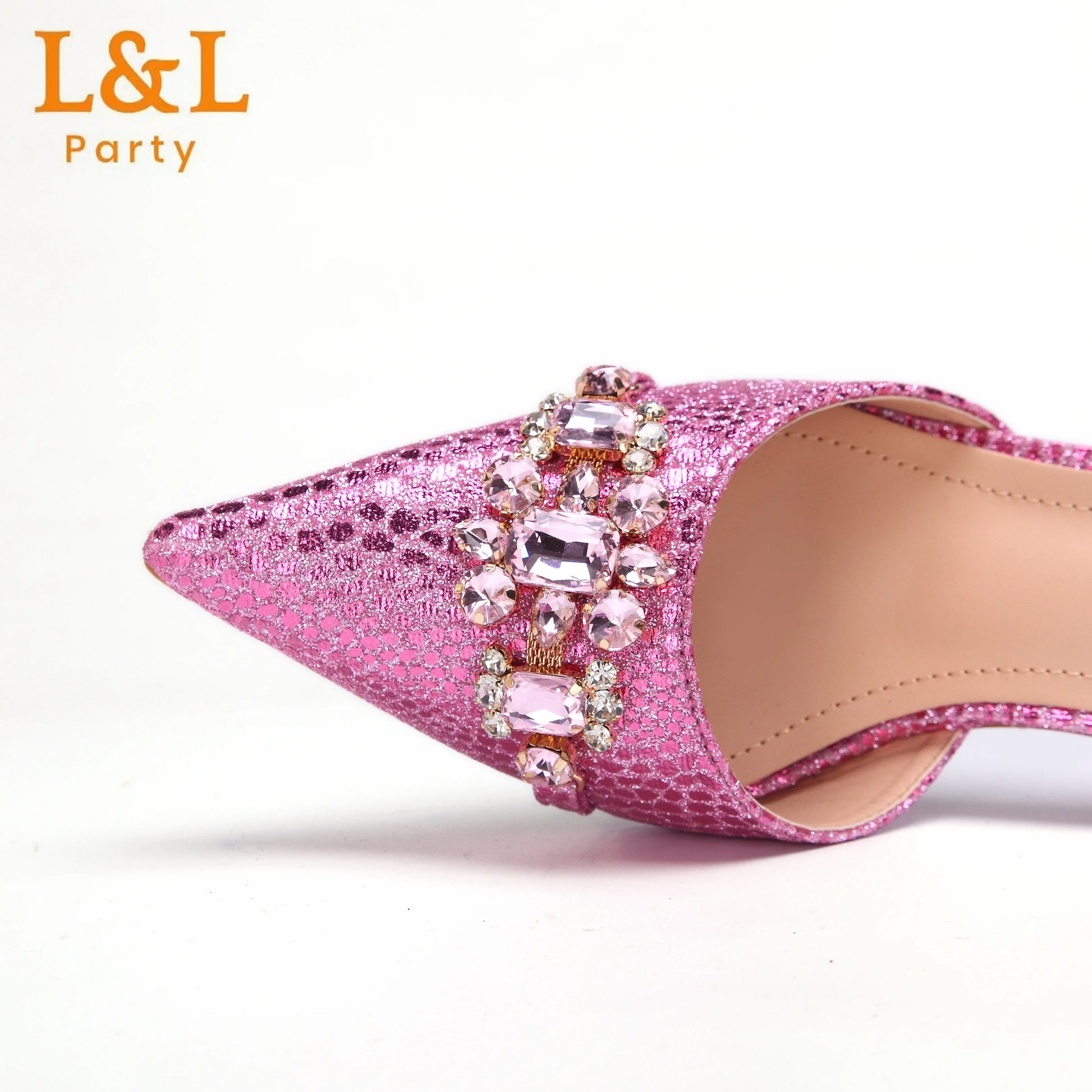 2024 Newest INS Pink Color Elegant High Heels Nigeria Popular Design African Ladies Shoes And Bag Set for Wedding Party