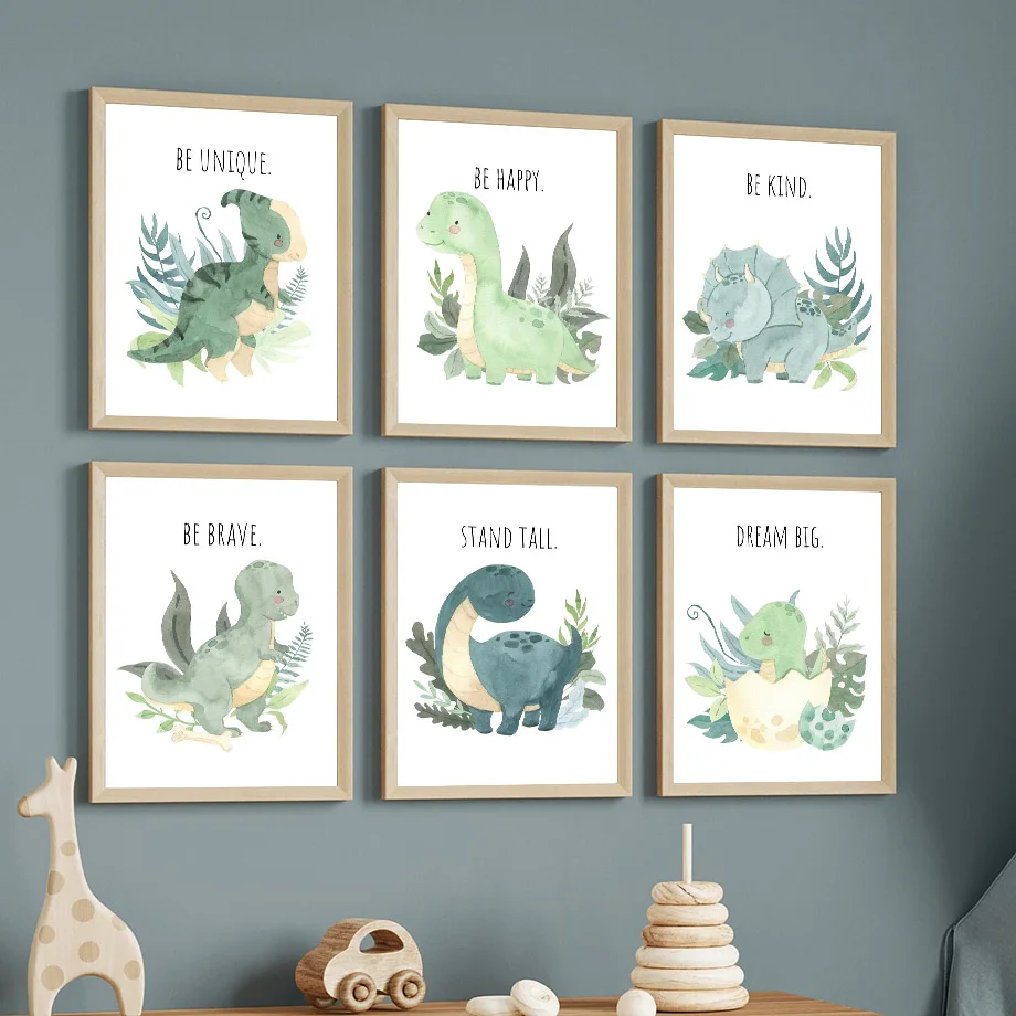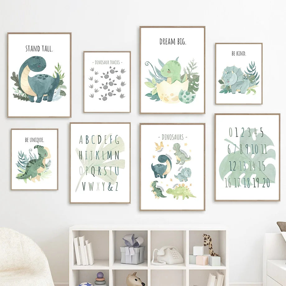 Cartoon Dinosaur Numbers Alphabet Jurassic Dino Nursery Posters Print Canvas Painting Wall Art Picture Baby Kids Room Home Decor