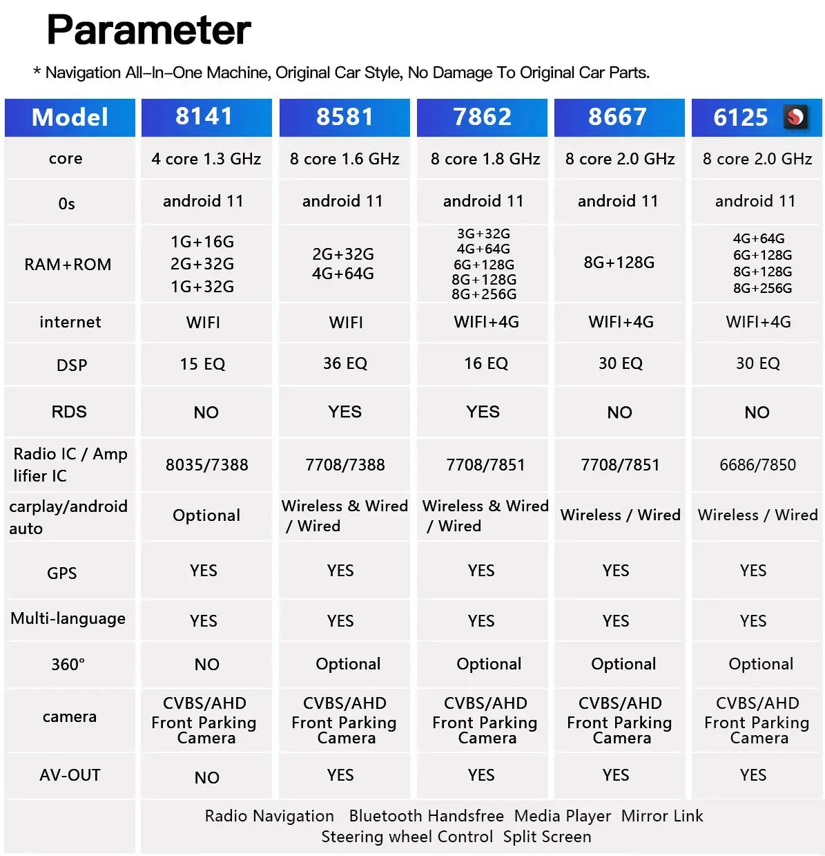 Special Feature: Built-In Speaker/Microphone,wifi function,Support steering wheel control,Support 3G Network,Support 4G Network,Support Can-Bus