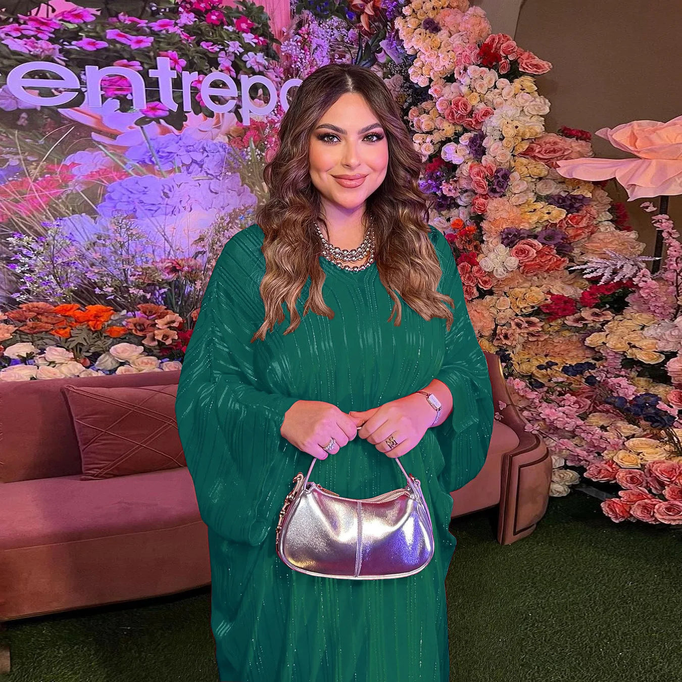 Hot Selling Abaya Set For Muslim Women Kaftan Dubai Luxury Shiny Batwing Sleeve Evening Party Dress Modest 2 Piece Muslim Sets