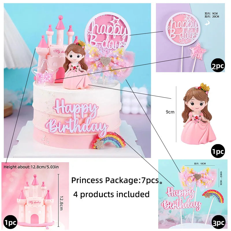 Princess Cake Topper Girl Happy Birthday Party Supplies Kids Happy 1st Birthday Cake Decorations Girl's 16th Party Gifts