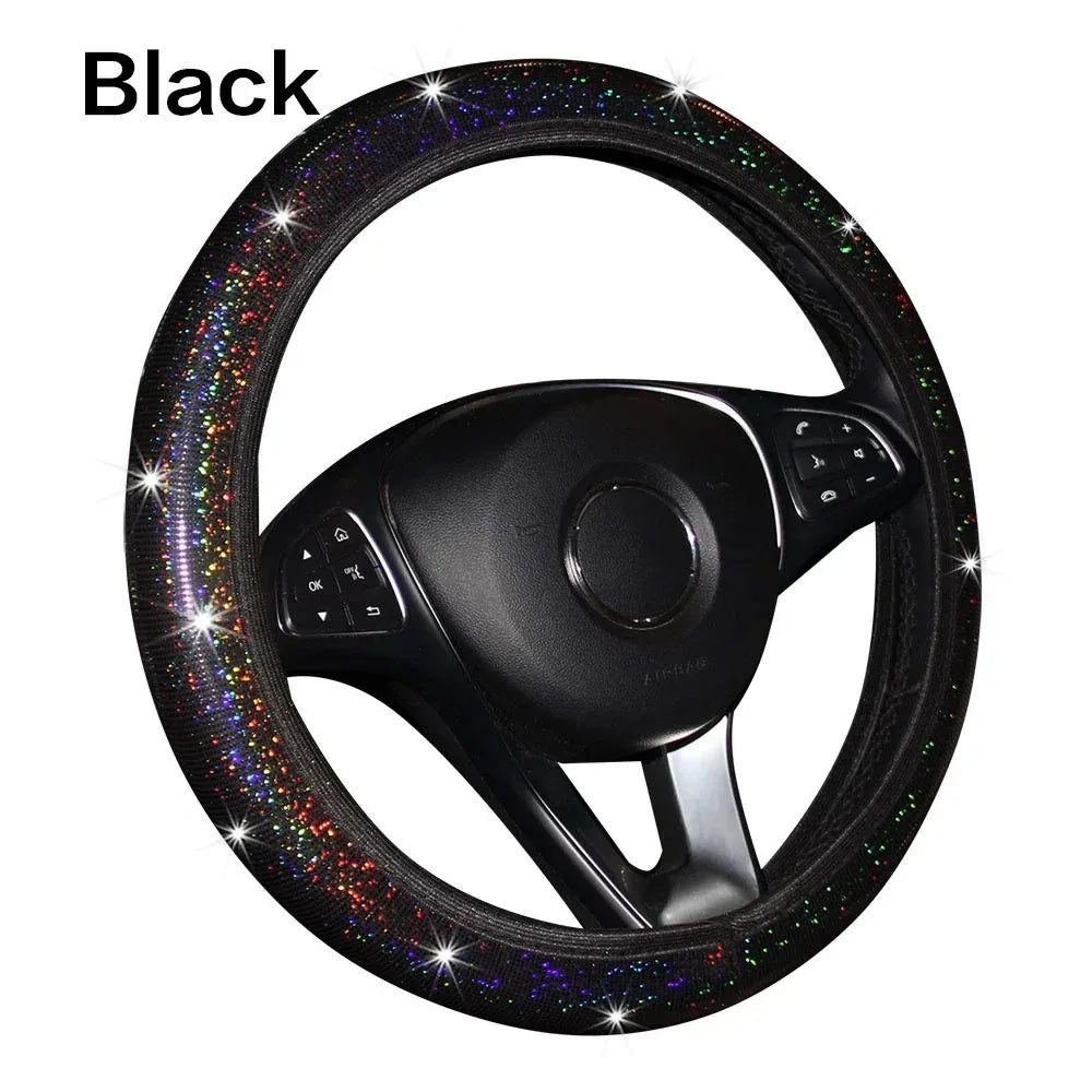 Rhinestone Crystal Car Steering Wheel Cover, PU Leather, Fits Car Accessories and Car Styling, Enhances Luxury and Comfort