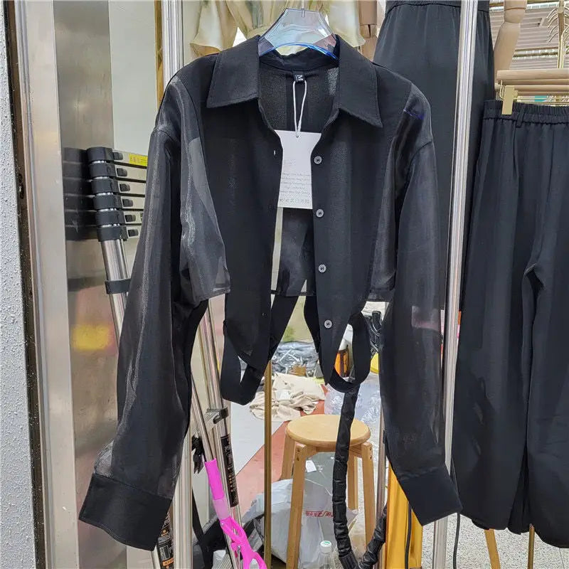Shirts Women Sun-proof Crop Tops Sheer Loose Chic Summer Sexy Girls Ulzzang Fashion Casual Streetwear Camisa All-match Aesthetic
