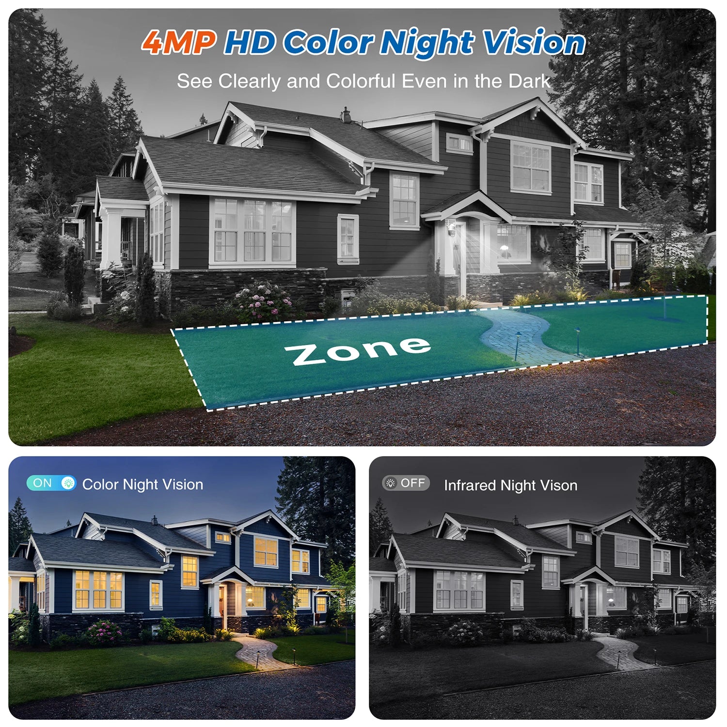 -Quickly finds human targets and immediately sends App notifications to your phone so you can see what's happening anywhere.
