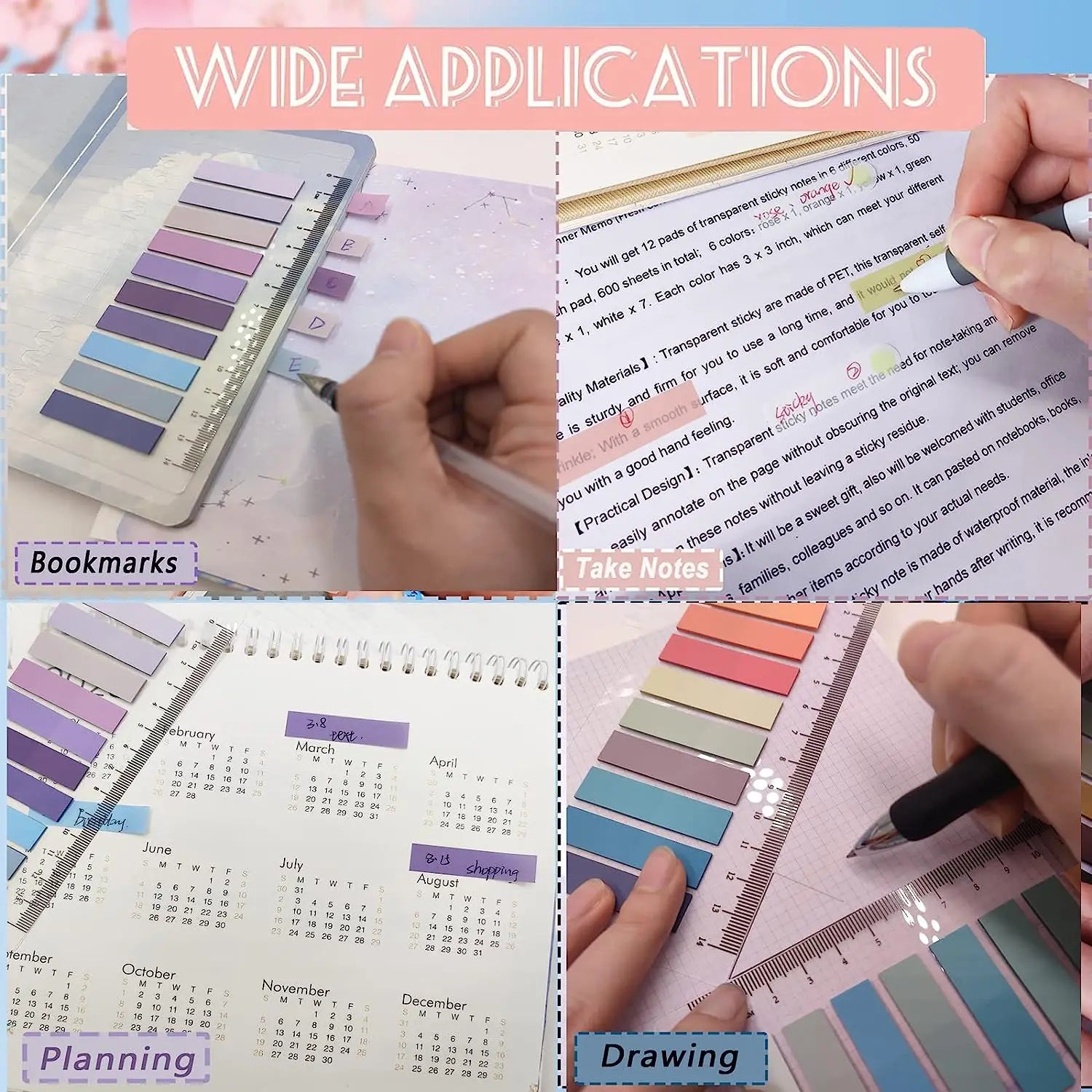 200/1200Sheets Writable Sticky Tabs Book Tabs Page Markers Translucent Sticky Note Tabs Post It Stick Tabs Annotation Tabs Index