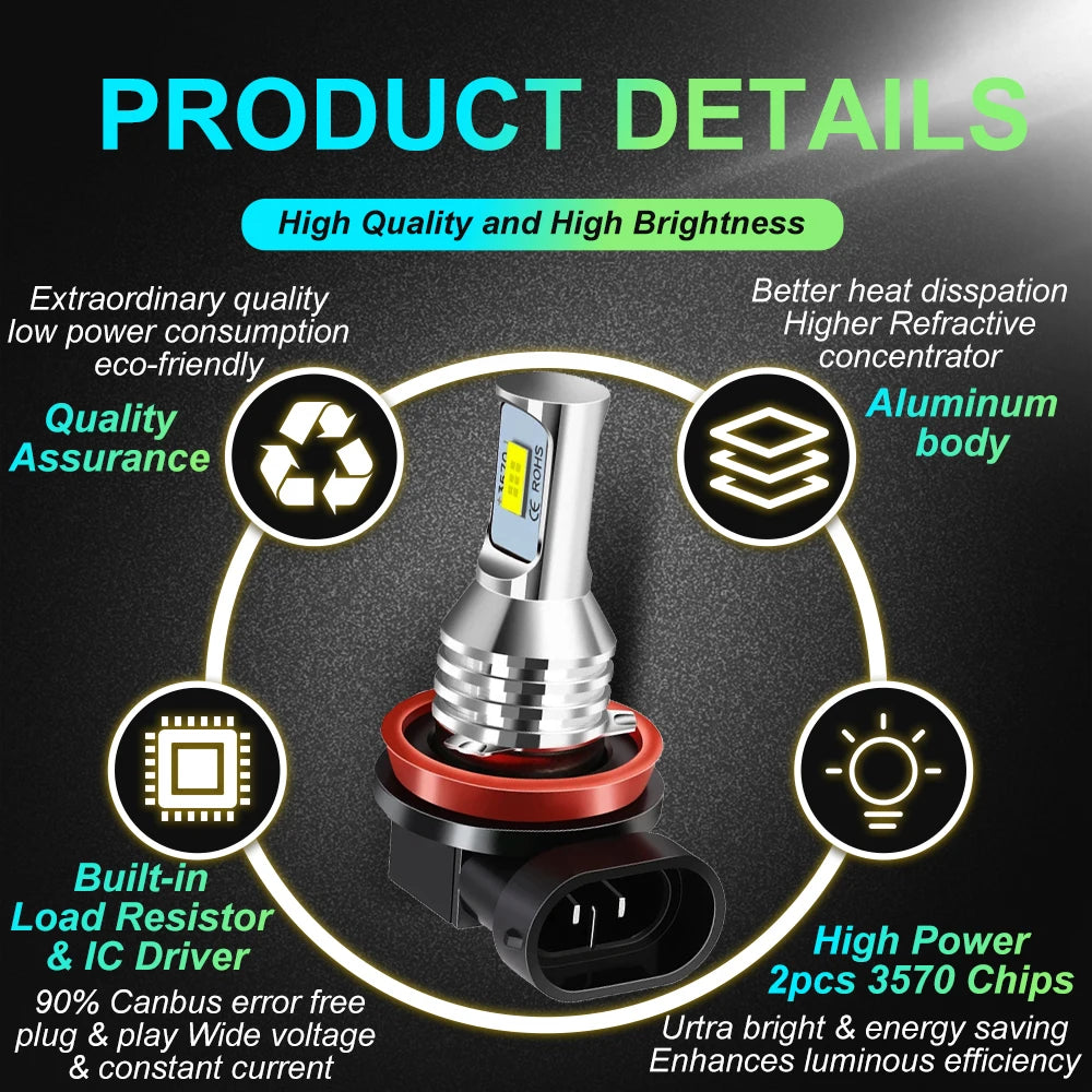 Package includes: 2Pcs/set LED Fog Car Headlight Lights Bulbs
