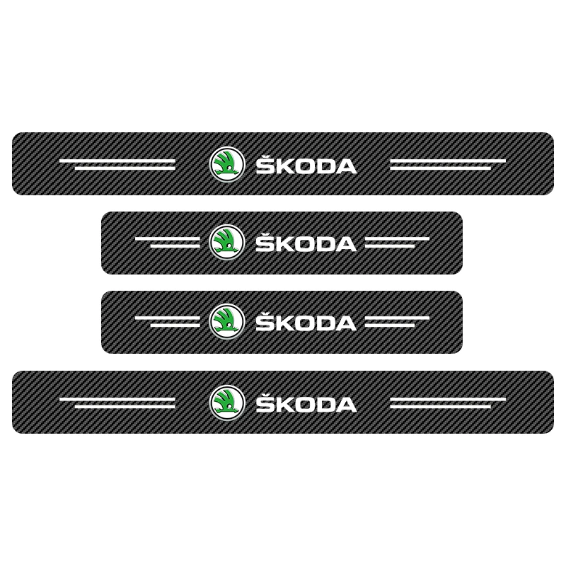 4PCS Carbon Fiber Car Sticker Auto Door Threshold Waterproof Stickers For Skoda Octavia MK2 MK3 2 3 A7 Fabia Karoq Kodiaq Rapid