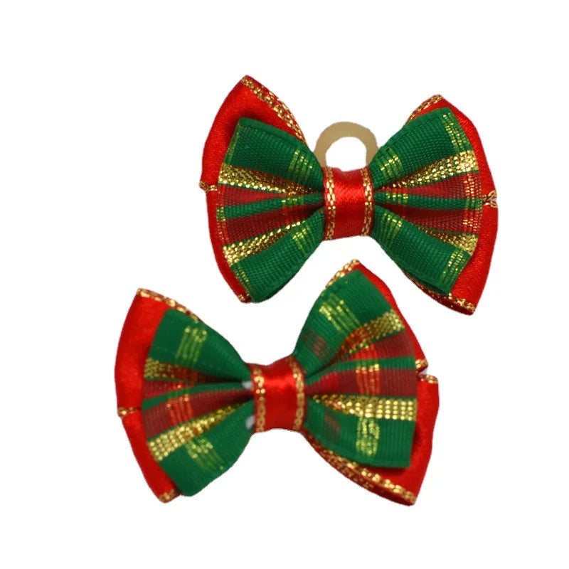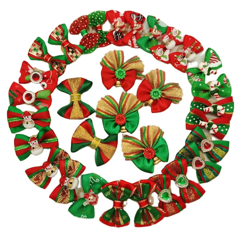 50pcs Christmas Dog Bowknot Cat Hair Bows with Rubber Band Santa Claus Decoration Small Dog Pet Accessories