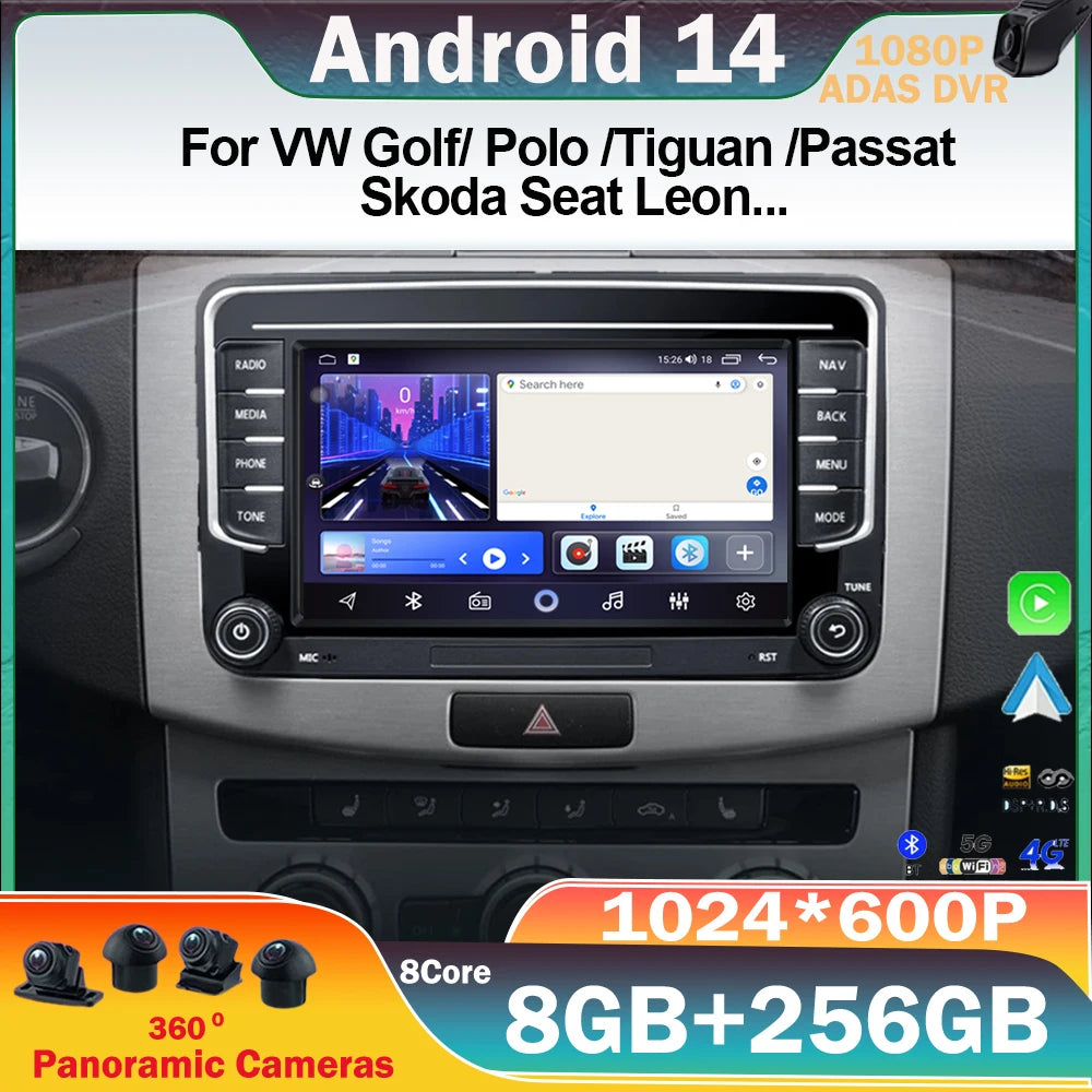 Android 14 Car Radio Carplay For VW Volkswagen Skoda Octavia Golf 5 6 Touran Passat B6 Polo Jetta CarPlay Auto Navigation Stereo