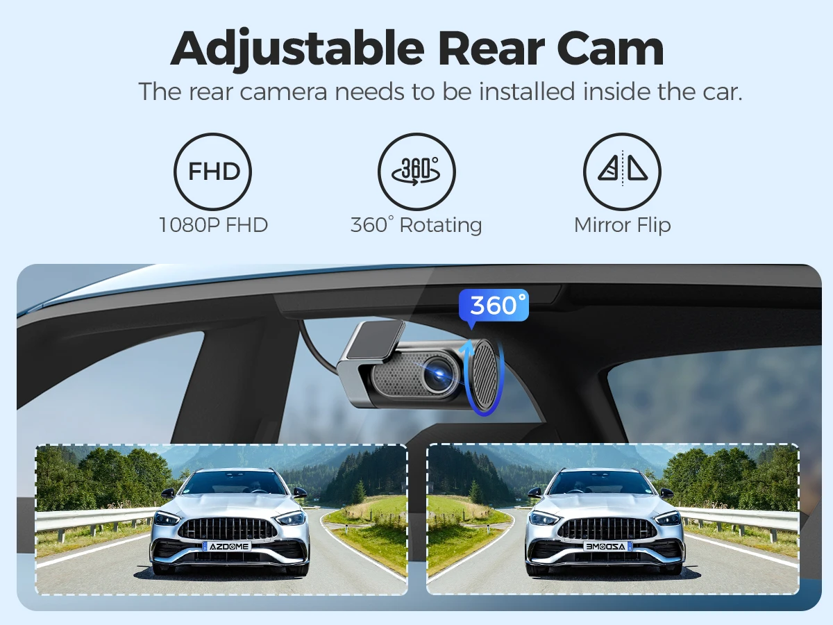 Rear Camera: 1080P Full HD resolution to capture what happens behind your car.