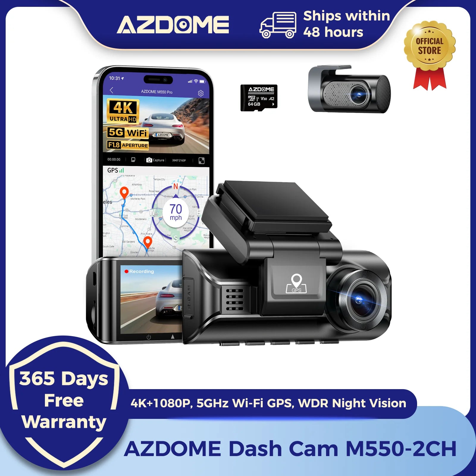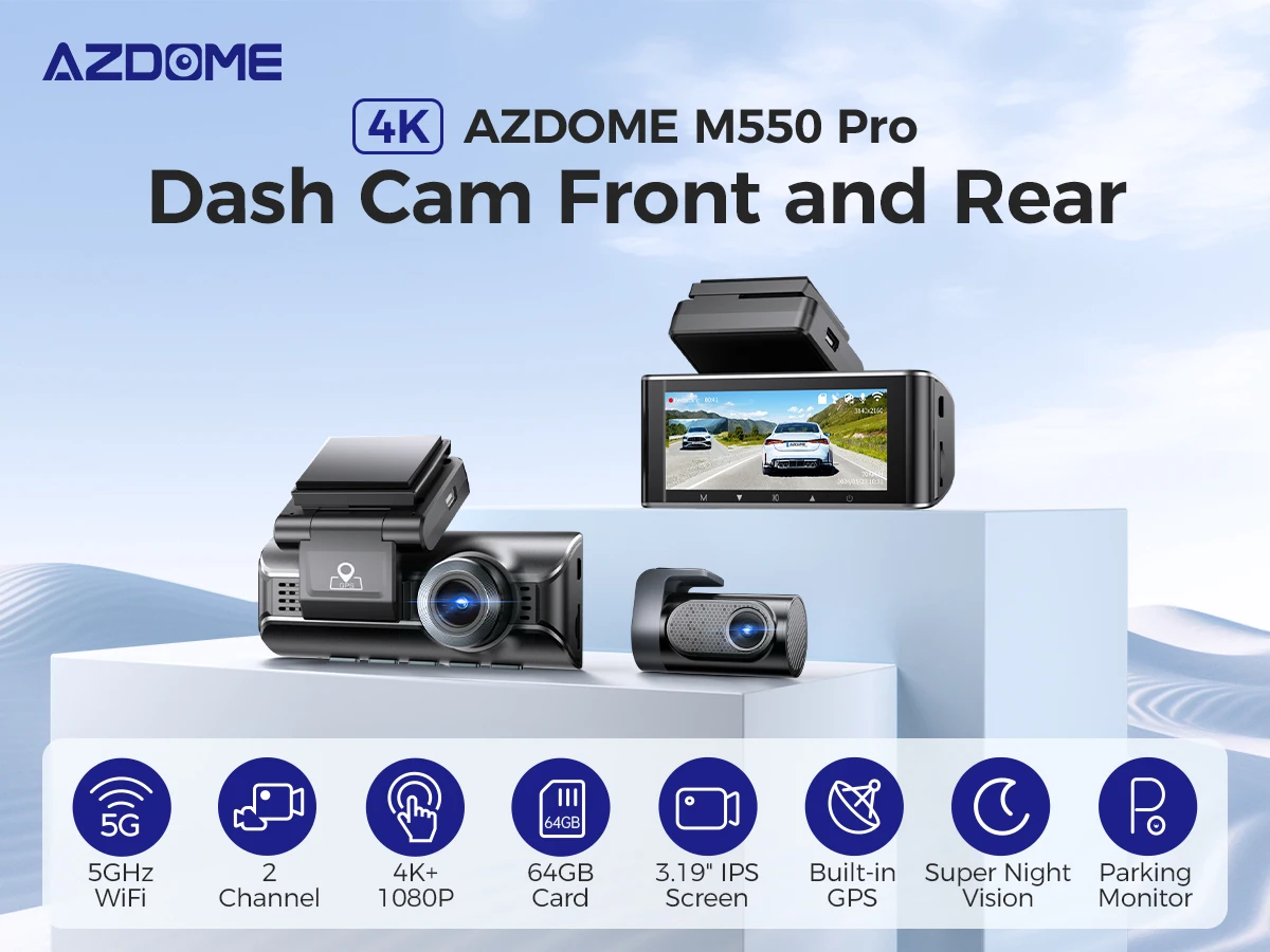 AZDOME M550 Pro 4K+1080P Dash Cam Front and Rear 3.18'' IPS Screen Dashcam 5GHz Wi-Fi GPS 150°FOV Car Camera WDR Night Vision
