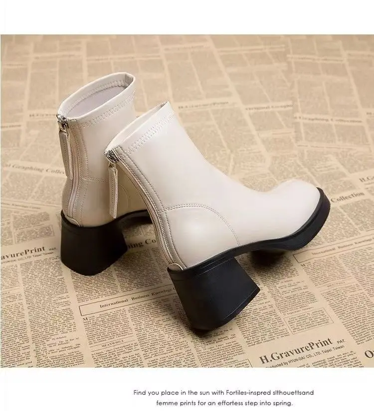 Black Women's Ankle Boots Fashion Back Zippers Short Square Heel Women Shoes Anti-slip Thick Sole Leisure Daily Commute Boots