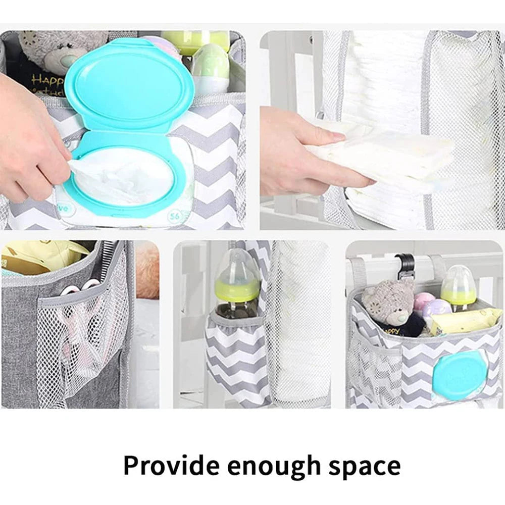 ♥ MULTIPLE HANGING WAY: 1 C-clip hook onto all playard frames, this hanging diaper organizer adjustable buckle straps for modern cribs with thicker bar, dresser changing station, pack 'n play and even your car.