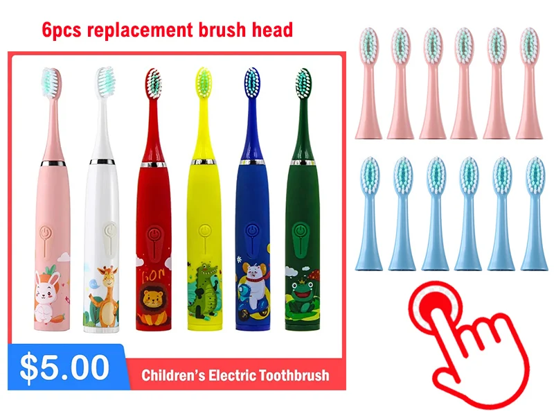 If you want to order Children electric toothbrush with extra 6pcs replacement brush head,please click the photo :
