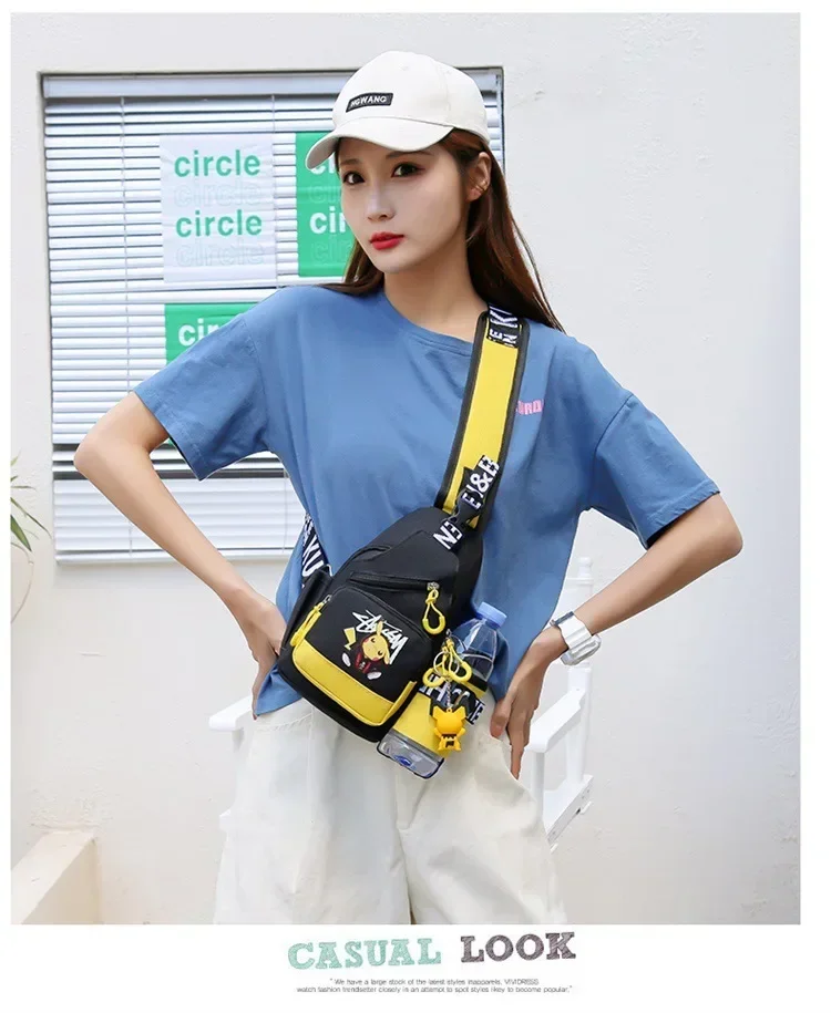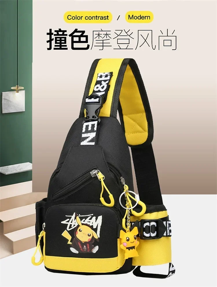 Children's Shoulder Bag Men's and Women's Chest Bag Canvas Youth Sports Pikachu Crossbody Bag Handbag Chest Belt Waist Bag