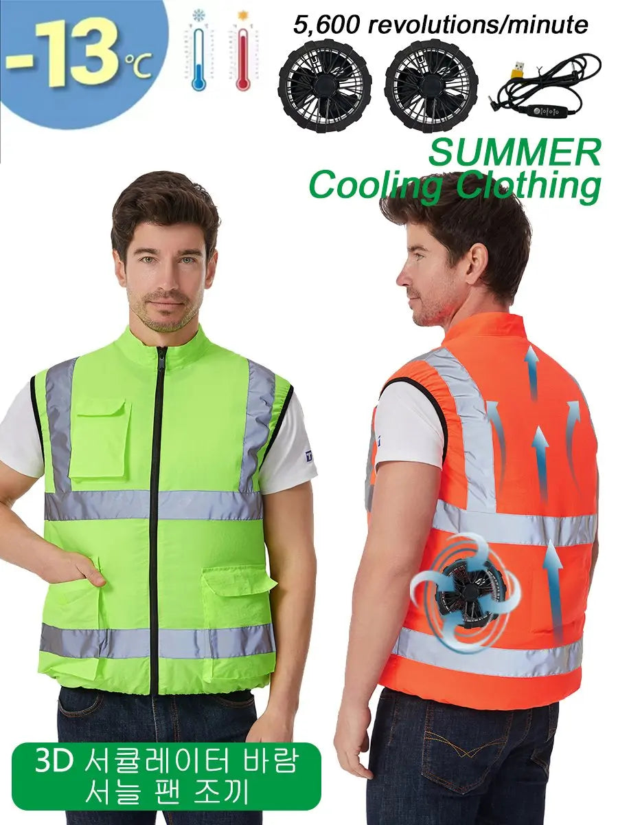 Cool Vest Summer Cooling Fan Waistcoat Reflective Stripe Work Clothes 5V USB Charging Conditioning Clothes Cooling Vest