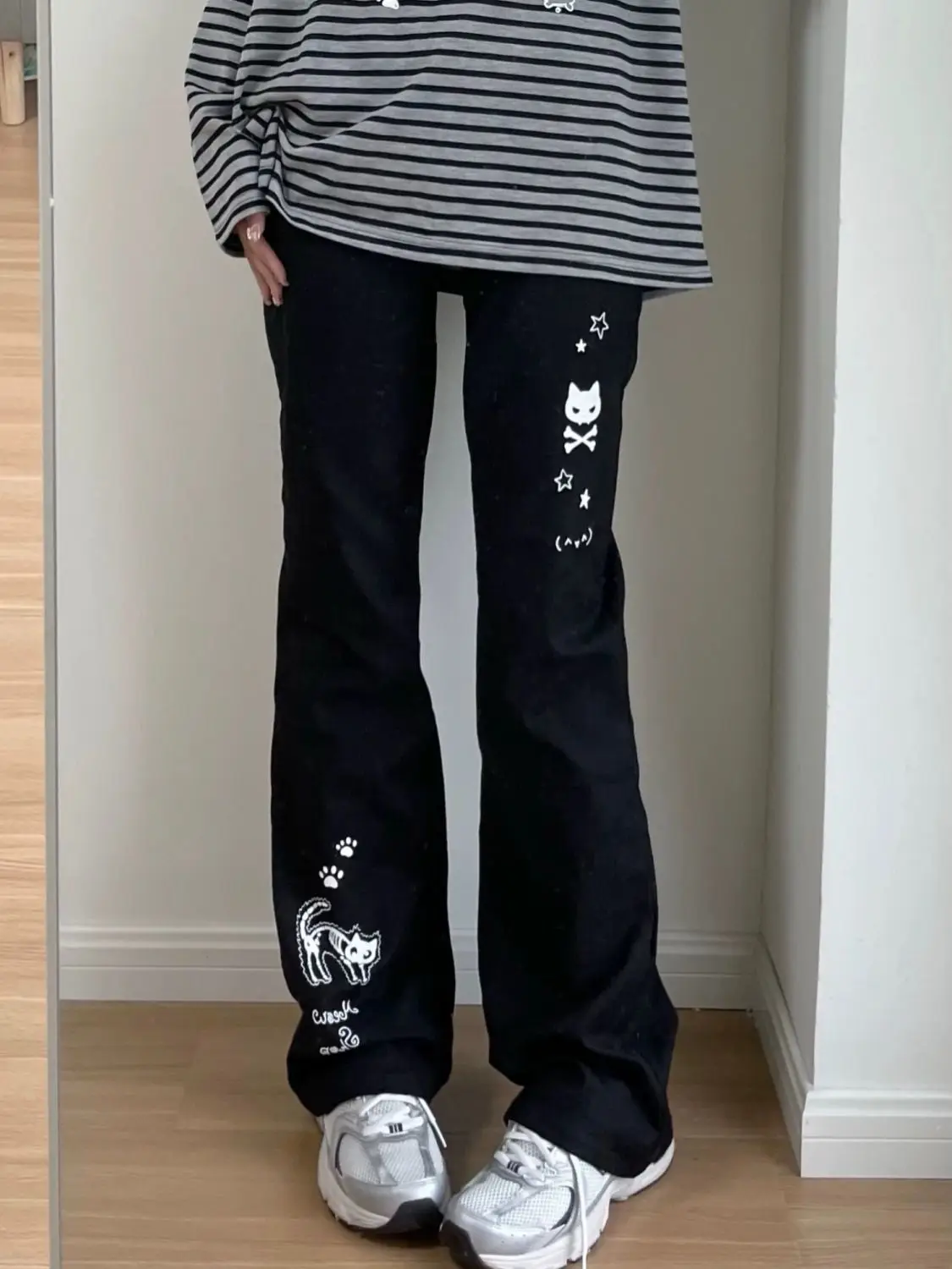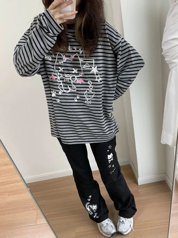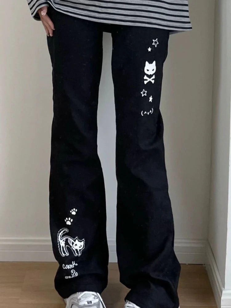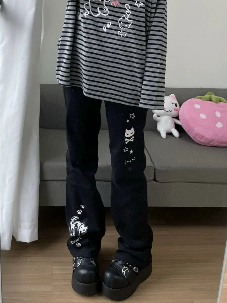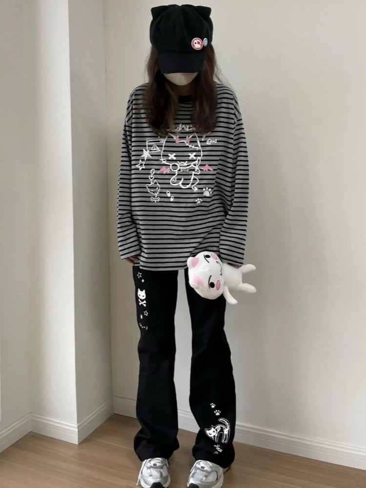 Deeptown Y2k Harajuku Streetwear High Waist Wide Leg Pants Women Japanese Kawaii Grunge Cartoon Print Trousers Soft Gilr 2024