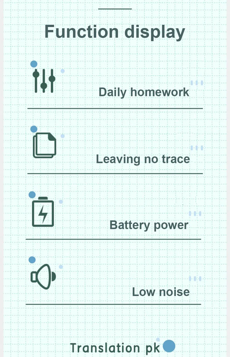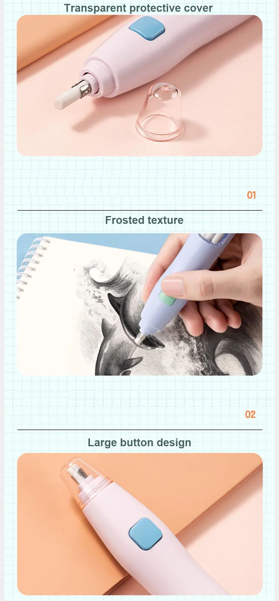3. The electric eraser is powered by 2 AAA batteries(Not included) and helps you release your hands while drawing and drafting.