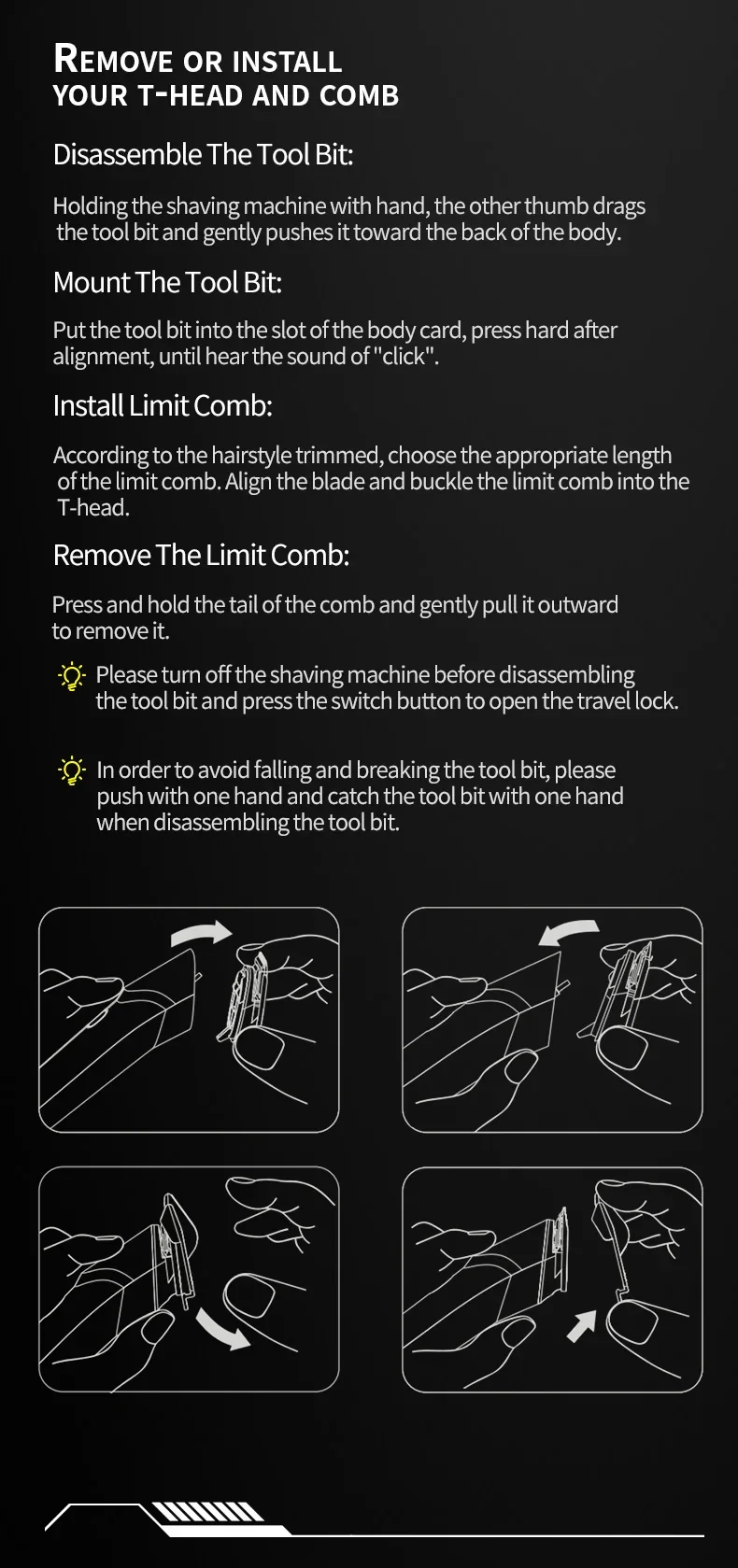 REMOVE OR INSTALL YOUR T-HEAD AND COMB