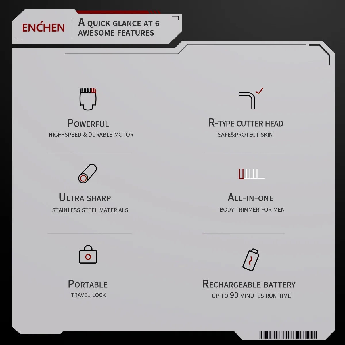 ENCHEN Hair Clipper Professional Hair Trimmer Hair Cutting Machine Multi-functional Body Trimmer Beard Shaver for Men - Beardo 2