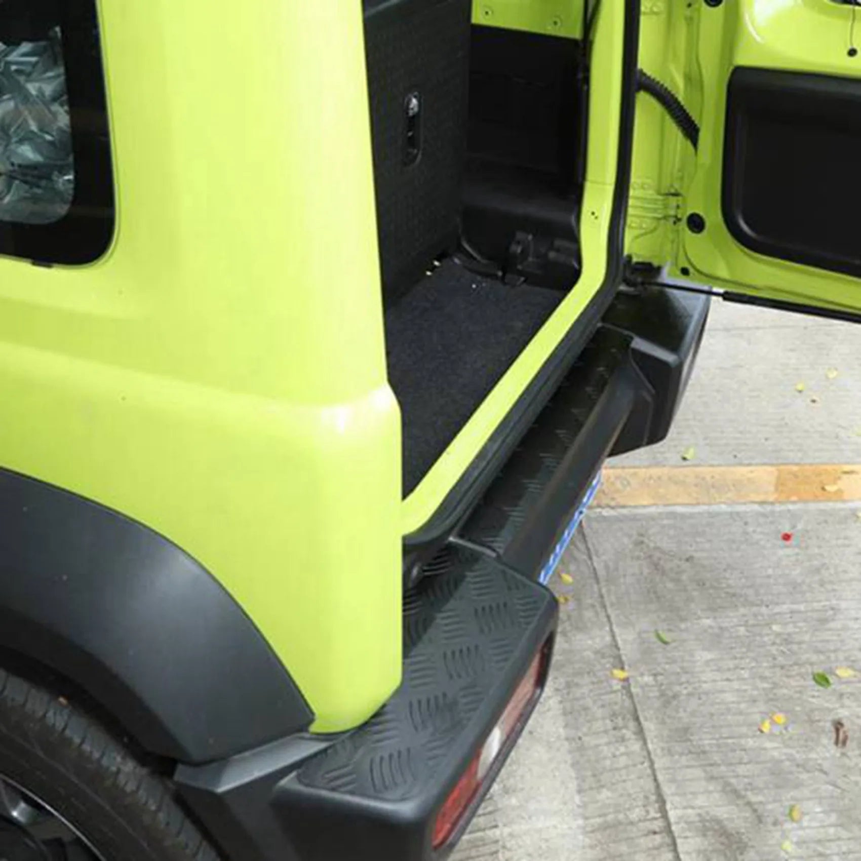 with High Quality Double-sided tape on the back of the product,Easy to install Decorate your car charming luxury vivid Name:Rear Bumper Panel Cover Item Name: Car Rear Bumper Panel Guard Decoration Car Model: For Jimny 2019-2022+ Colour:black Material:Aluminum alloy Package Contents: 3 x Rear Bumper Panel Cover Only the above package content, other products are not included. Note: Light reflection and different displays may cause the color of the item in the picture a little different from the real thing. The measurement allowed error is +/- 1-3cm.