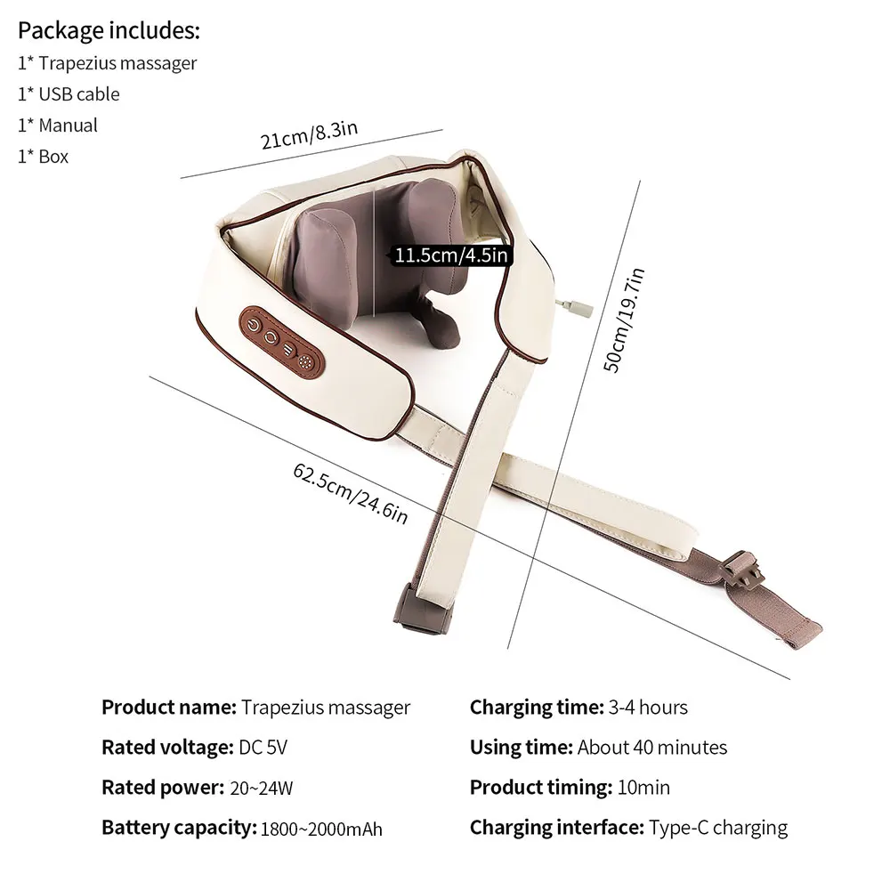 1.Trapezius massager. Using bionic massage, bi-directional clamping & kneading, and constant temperature hot compress, the massage action can deeply relax your muscles and relieve soreness.