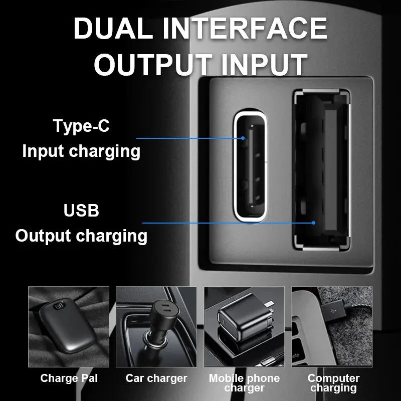4. dual interface input and output, USB output charging, Type-C input charging, digital display always grasp the power.