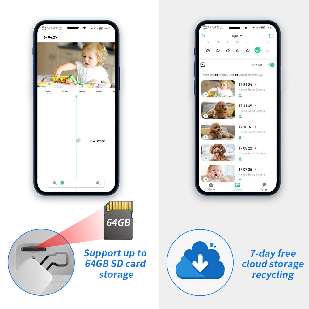 Up to 60 days of cloud storage intelligent backup to prevent lost. 7-days free cloud recording recycling.