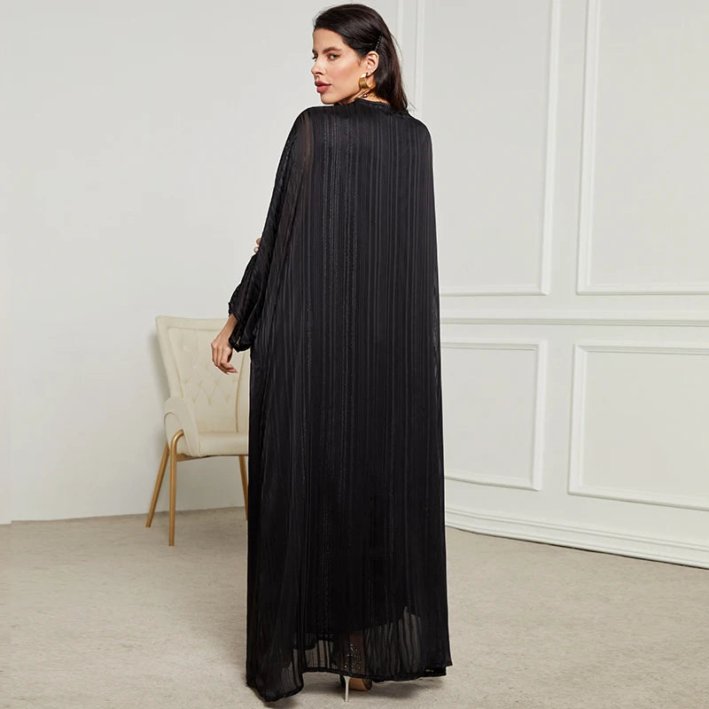 Hot Selling Abaya Set For Muslim Women Kaftan Dubai Luxury Shiny Batwing Sleeve Evening Party Dress Modest 2 Piece Muslim Sets