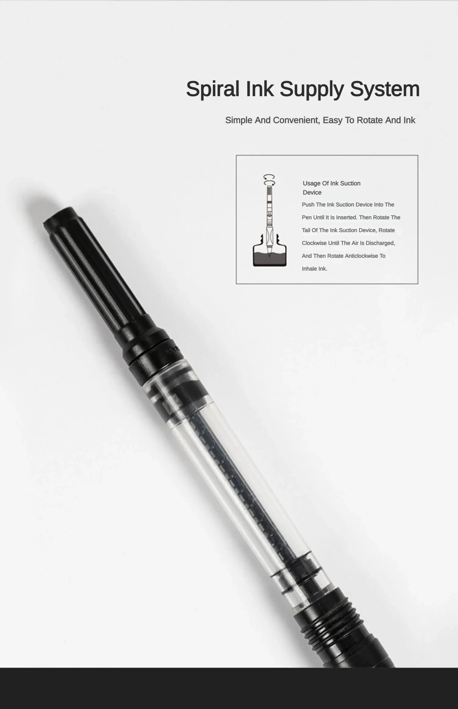 Boasting a high aesthetic value and a stylish clip, the Jinhao 65 fountain pen adds a touch of elegance to your desk. The spiral ink delivery system offers a simple and convenient way to refill ink, enhancing your writing experience. Furthermore, three nib options are available to cater to different writing needs, allowing you to express yourself with even greater finesse.