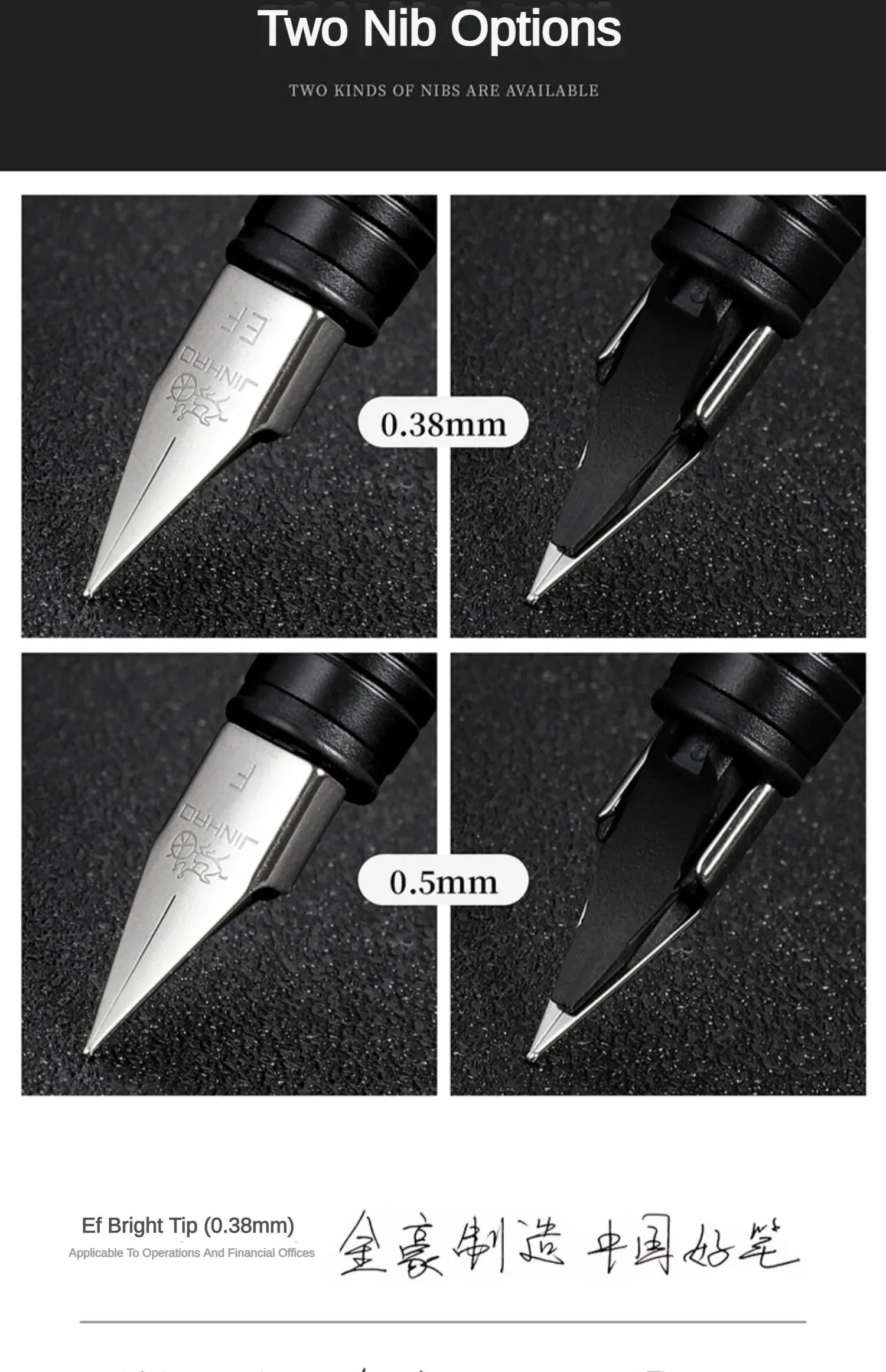 JINHAO 65 Fountain Pen F/EF/ 0.3mm Nib Stainless Steel Frosted Black Writing Ink Pens Business Office School Supplies Stationery