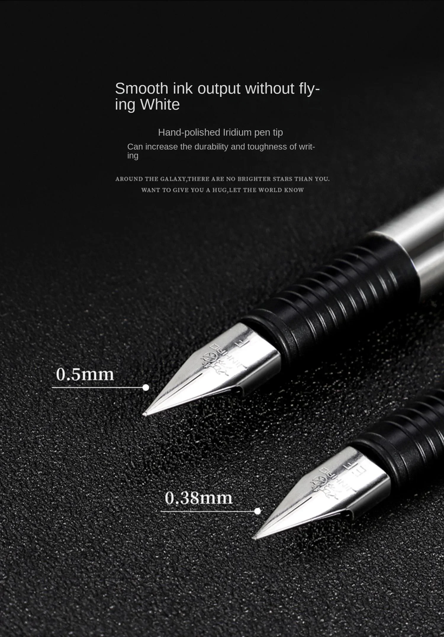 The Jinhao 65 fountain pen boasts a hand-crafted iridium nib that ensures smooth ink flow without blotching. The durability and resilience of the iridium material make the nib more resistant to wear and tear, maintaining a fresh writing feel even after extended use. Whether it's writing Chinese characters, English, or other scripts, it handles them all with ease, resulting in clearer and more powerful handwriting.
