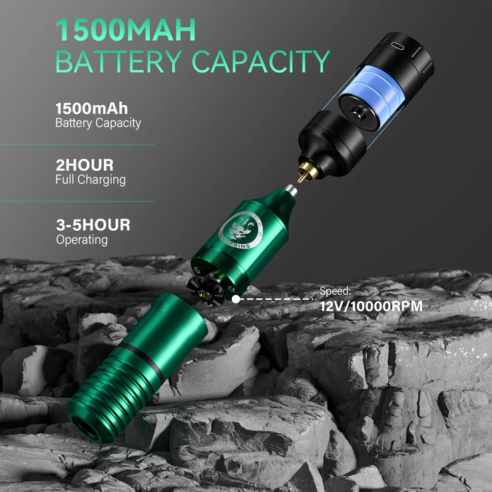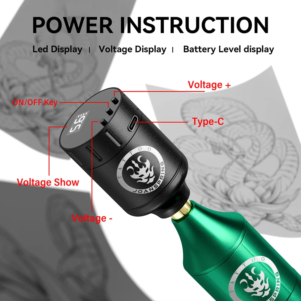 JOANSPRING Tattoo Kit Complete Wireless Rotary Tattoo Machine Kit Battery Needle Ink Cup Box Power Supply Rotary Tattoo Pen Set