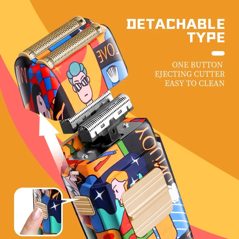 Kemei KM-1102H Fashion Men'S Electric Shaver Usb Charging Electric Shaver For Men Personalized Graffiti Hair Shaving Machine