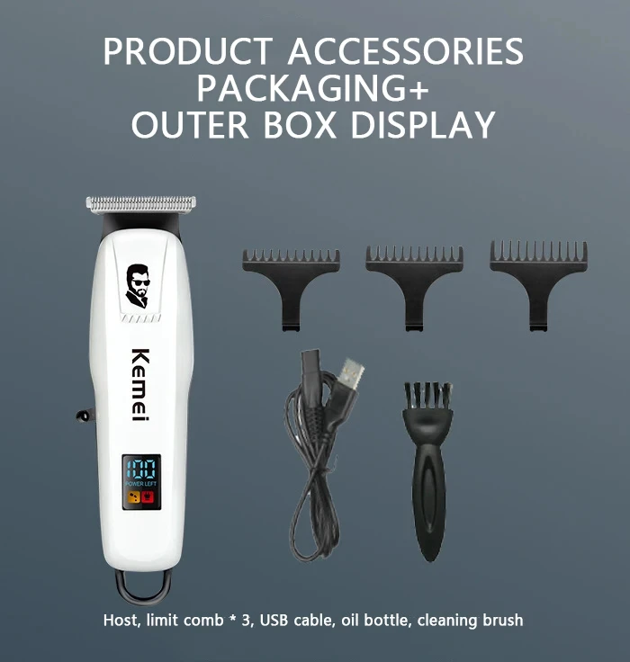 Kemei KM-PG232 Professional Hair Cutting Machine Electric Hair Clipper Cordless Trimmer for Men Rechargeable Shaver Styling Tool