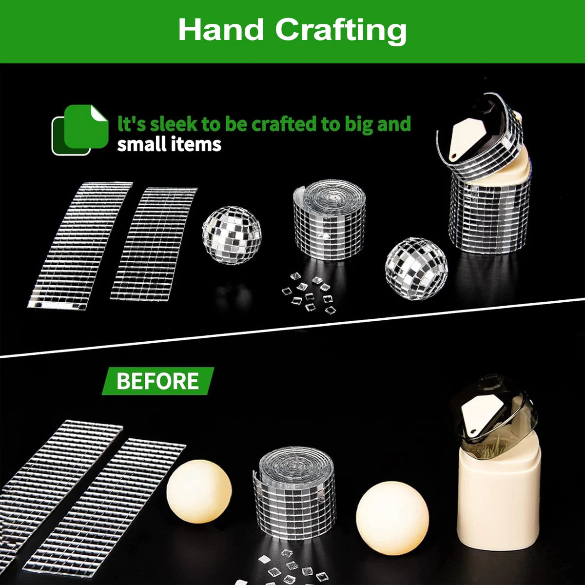 Easily Make Crafts: These disco tiles are very flexible, easy to cut and easy to attach to objects, giving you a good product experience. You can easily make beautiful and eye-catching small crafts with these mirror tiles.