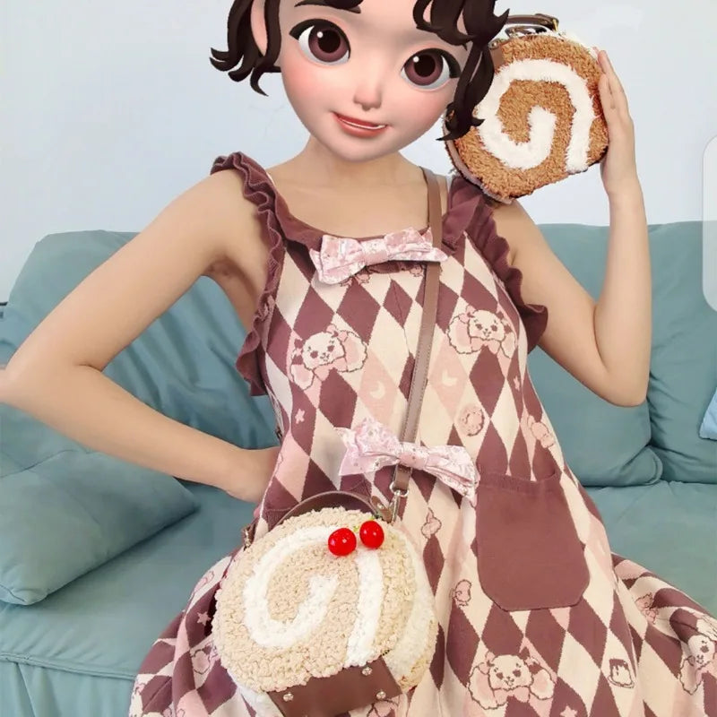Lolita Bag Sweet Cure Downy Crossbody Bags for Girls Circular Kawaii Handbag Teenage JK Uniform Shoulder Bag Сумка Bolso