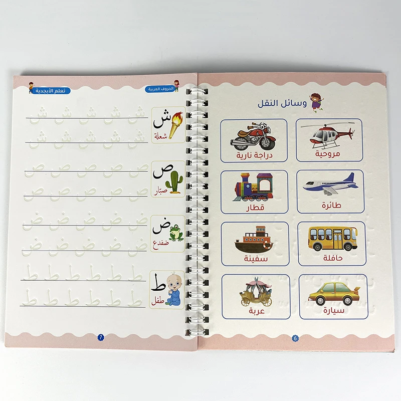 Magic Arabic Copybook Reusable Writing Free Wiping 3D Groove Learning Numbers/Alphabet Math Practice Magic Book for Kids