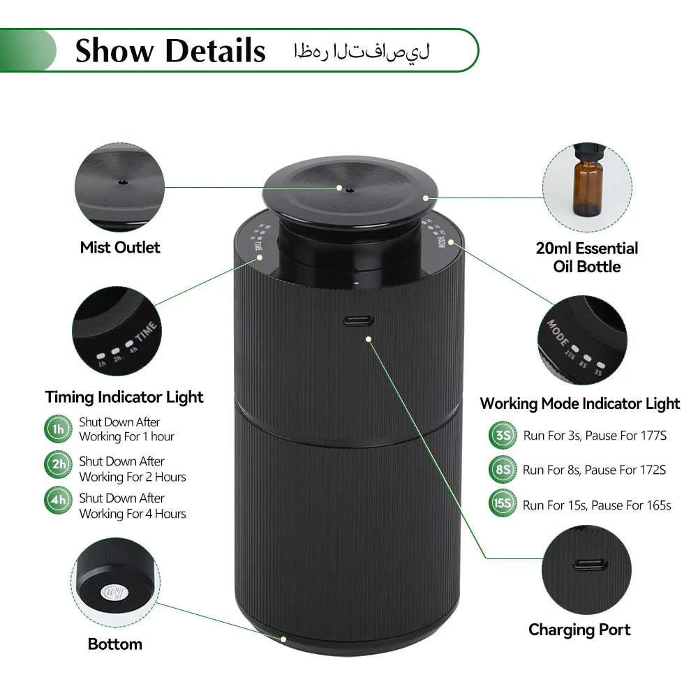 NAMSTE Office Aromatherapy Machine 20ml Capacity USB Rechargeable Car Home Premium Metal Aromatherapy Essential Oil Diffuser