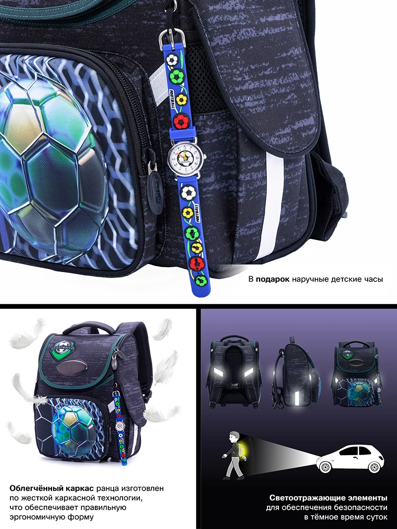 New 1-2 Grade Orthopedic Backpack for Boys Cartoon 3D Football School Bag Children's Backpack Primary School Waterproof Bookbags