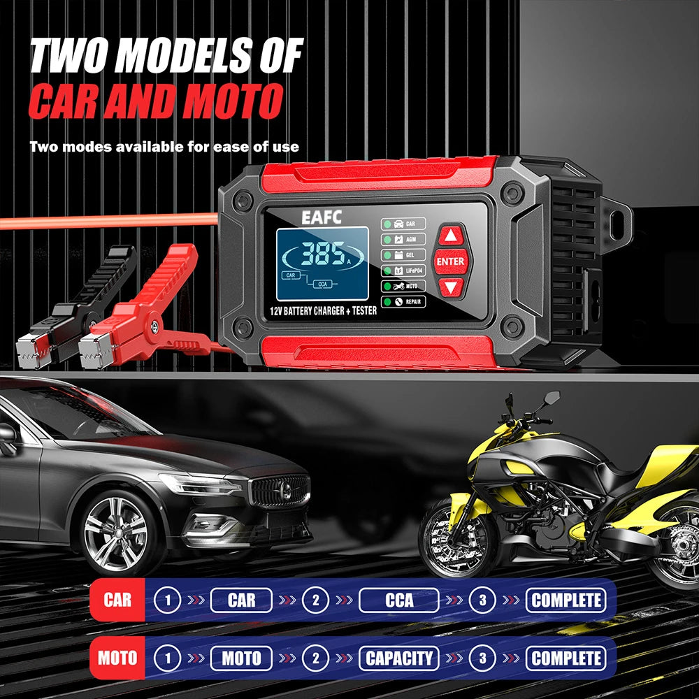 New 2in1 Smart Car Battery Charger System Tester Car Motorcycle Battery Analyzer For Lead Acid AGM GEL Lithium LiFePo4 Batteries