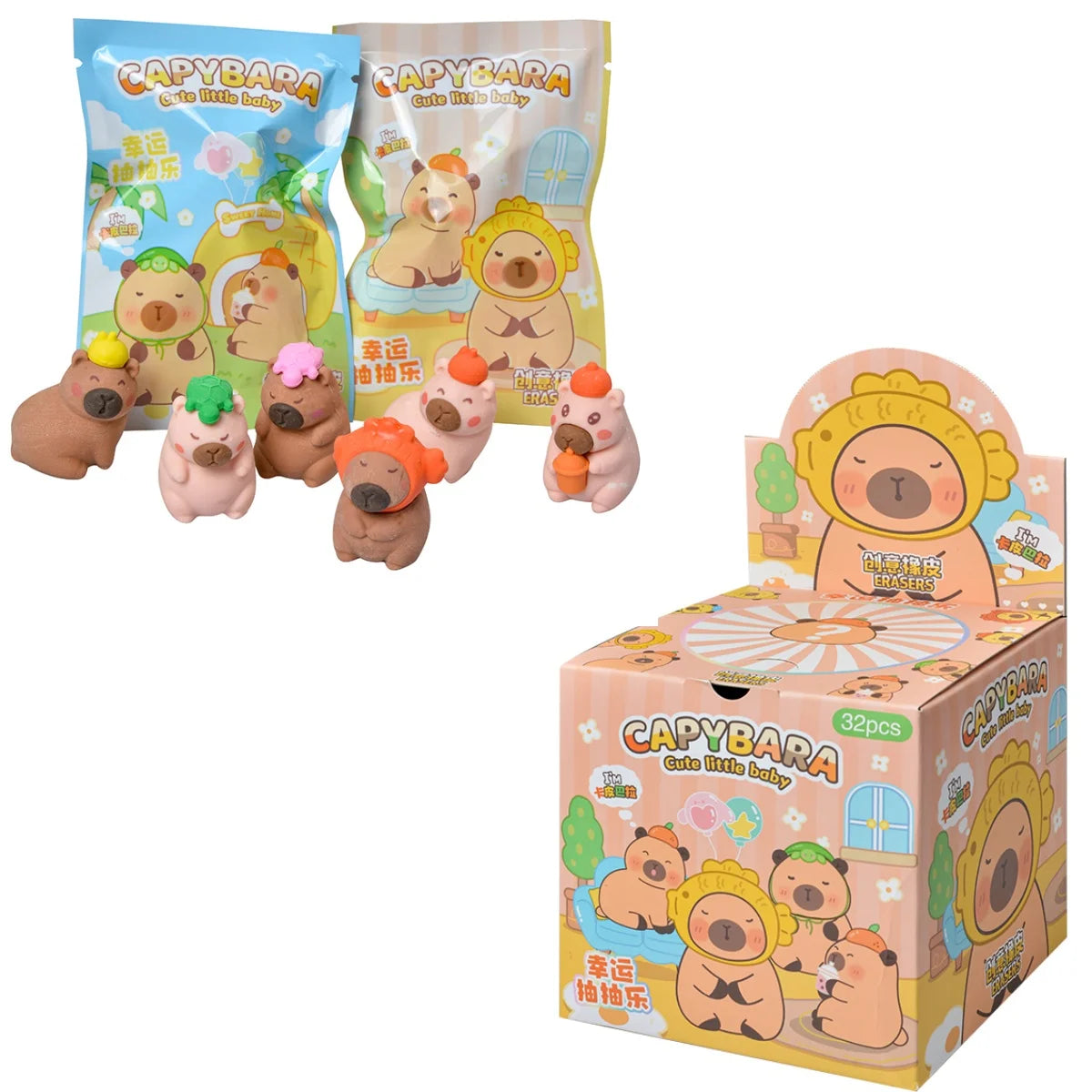 New In 32Pcs/Box Capibala Blind Box Cute Doll Eraser Action Pencil Doll Student Supplies Stationery Children's Gifts