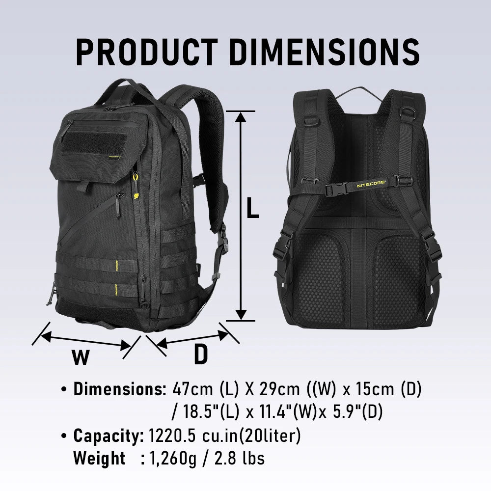 NITECORE BP23 PRO 23L Backpacks Multipurpose Commuting Travel bag Wearproof bag knapsack 500D Nylon Military Hunting Backpack