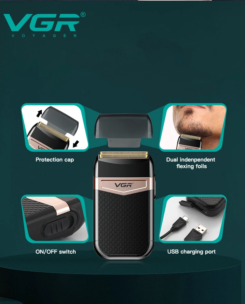 Original VGR Wet Dry Electric Shaver For Men Beard & Hair Rechargeable Electric Razor Balds Head Shaving Machine With Extra Mesh