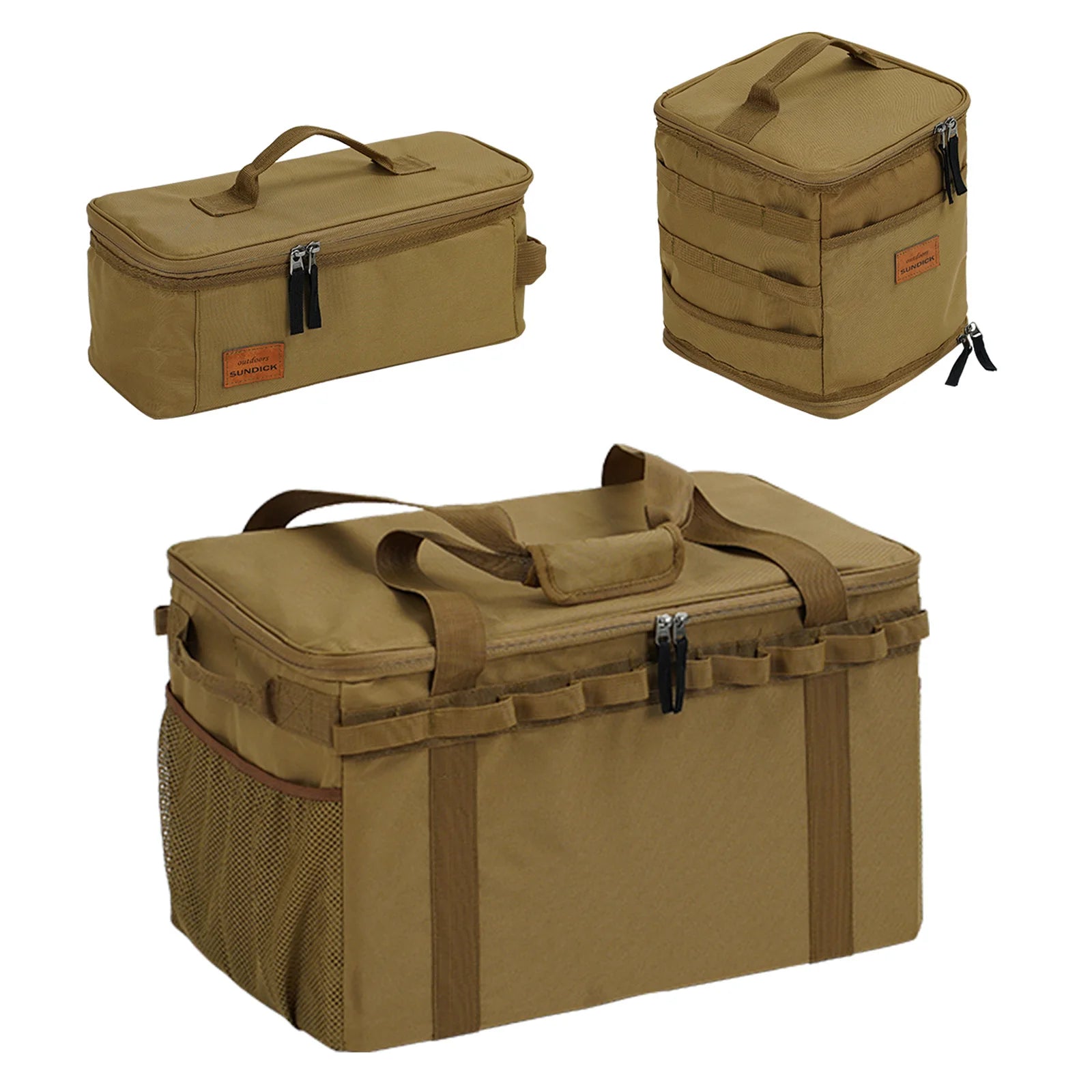 1.Material: The Camping Cookware Storage Bag is use thick Oxford cloth fabric, waterproof and wear-resistant, with fashionable style design to increase perceptual color. 2.Camping Cookware Storage Bag: Tableware, and cosmetics used in camping or traveling outdoors can be neatly stored for easy carrying. 3.Inside With Net Pockets: The inside net bag design can be used to separate items, mesh cloth, and put items at a glance. 4.Practical: Perfect for your utensils organizing when your family or friends outings to the beach, park or picnic, hiking, BBQs, camping, and more, it holds all your essential outdoor cooking cooking utensils with a sleek design. 5.Wide Application: This barbecue cookware bag is perfect for storing oven and some other barbecue accessories. Suitable for taking out for outdoor camping, picnic, travel, BBQ, garden party, etc Specification: Brand: SUNDICK Name: Portable storage bag Material: Waterproof Oxford cloth, metal fittings, cotton webbing Color: picture color Size: (Small) 340mmx140mmx140mm/13.4inx5.5inx5.5in (Medium) 235mmx215mmx215mm/9.25inx8.46inx8.46in (Large) 510mmx300mmx300mm/20inx11.8inx11.8in Net weight: (Small) 341g (Medium) 381g (Large)2050g Usage: Camping equipment storage bag, suitable for outdoor and daily use Note: Due to the different monitor and light effect, the actual color of the item might be slightly different from the color showed on the pictures. Thank you! Please allow 1-2cm measuring deviation due to manual measurement. ![]()