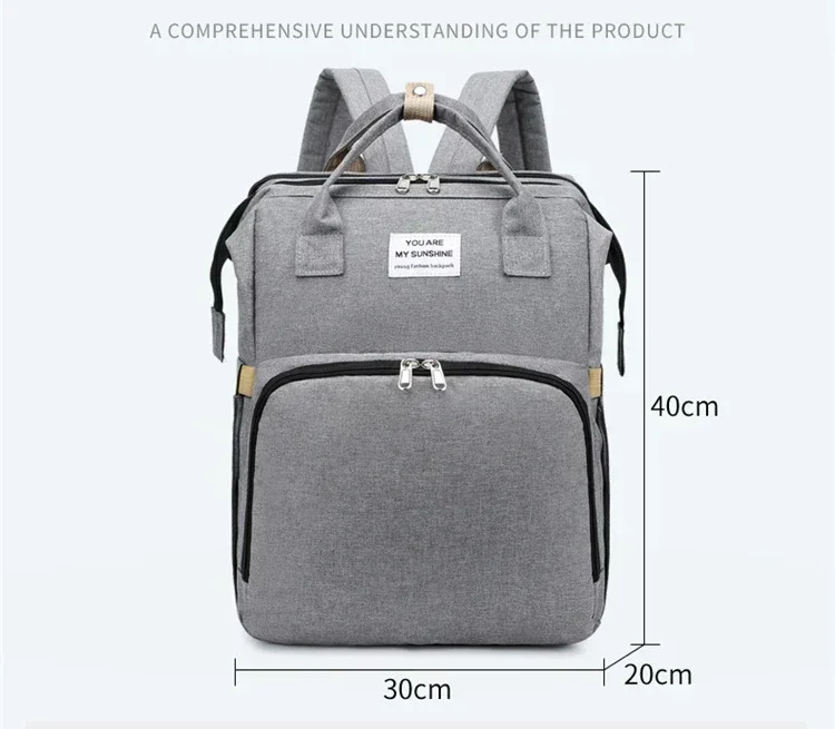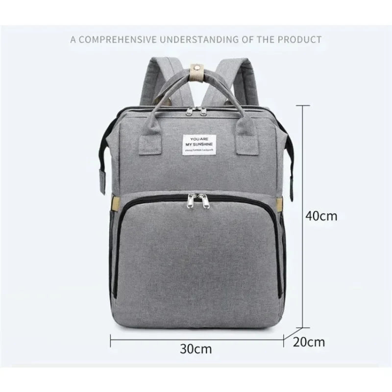 Multifunctional Diaper Bag and Crib: Diaper Backpack + Changing Table + Portable Crib. This is a baby bag when folded, and a crib when unfolded. Easy to organize baby items and access quickly. Suitable for families with babies to travel, excursion, shopping.