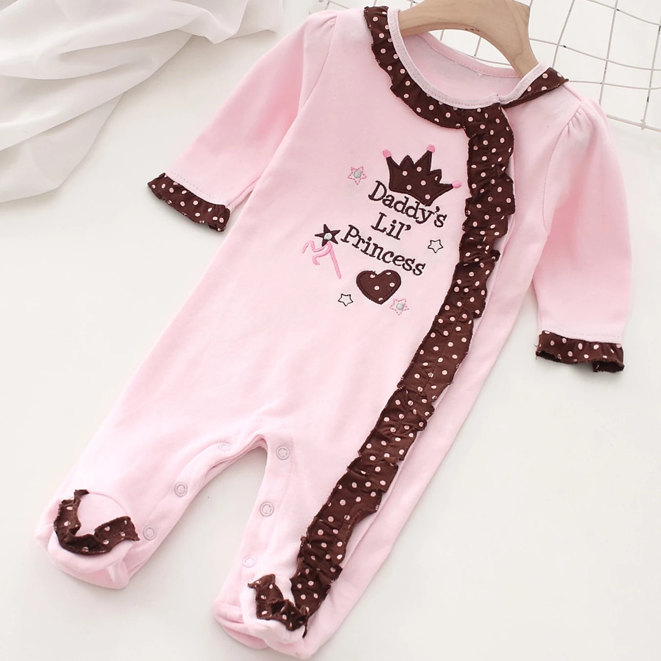 Princess Newborn Baby Girl Footies Ruffles Long Sleeves Jumpsuits for Autumn Cute Infant Girls Onesie Clothes
