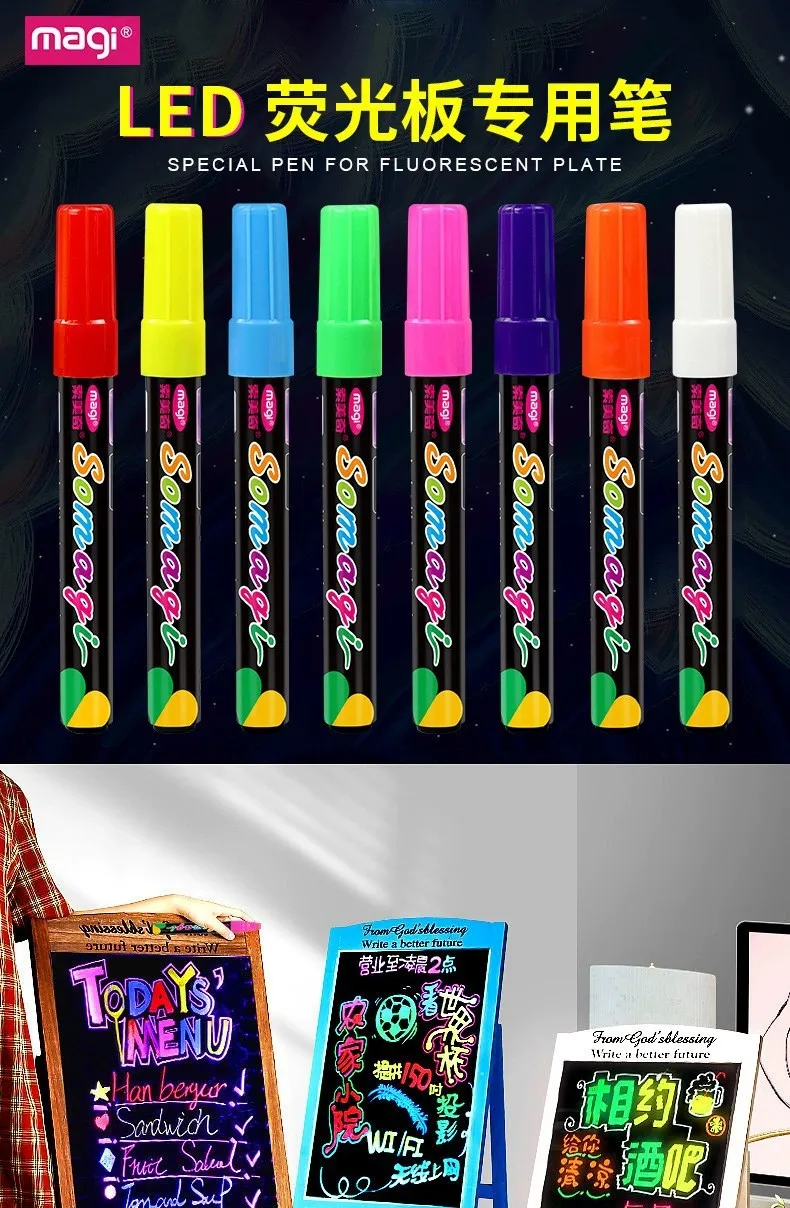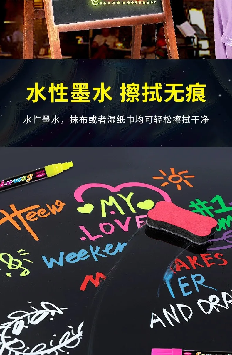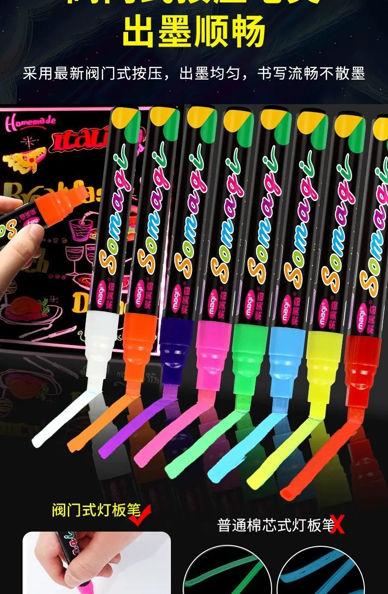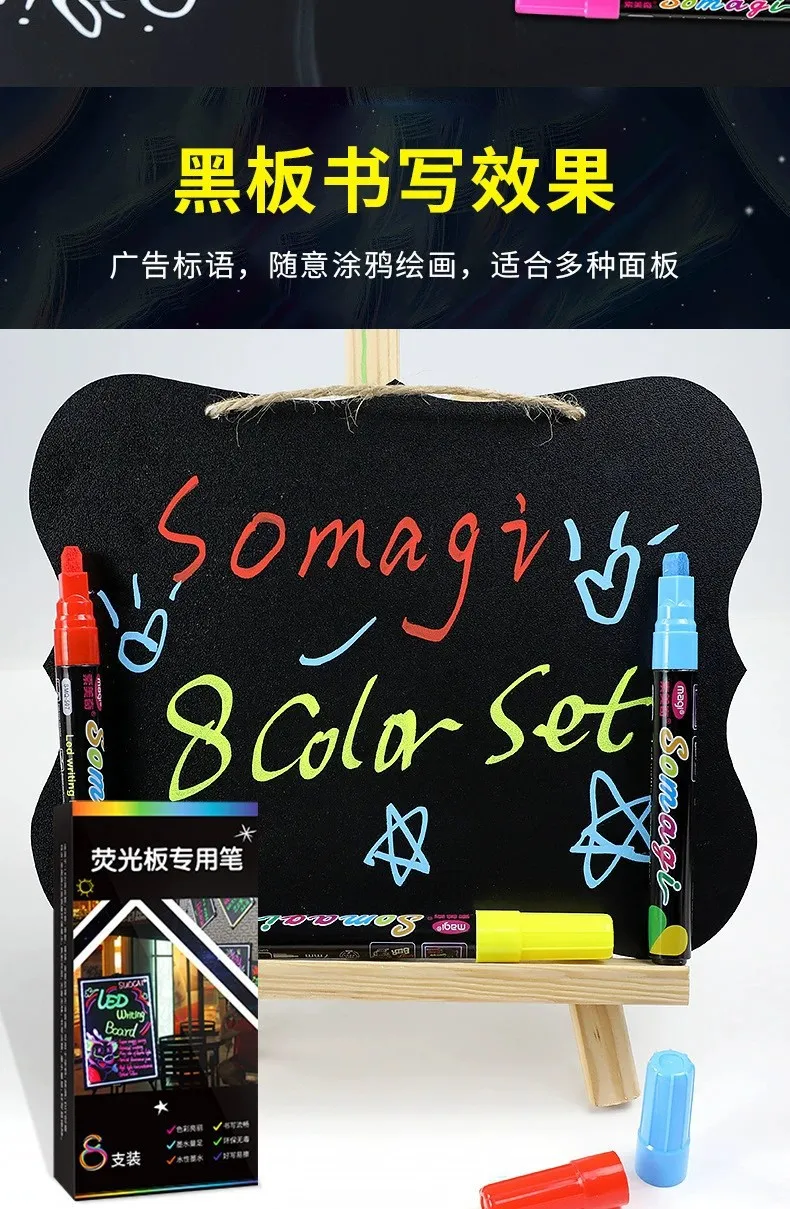 Roise 8 Colors/Set Fluorescent Pen Lamp Board Pen LED Pen Fluorescent Board Luminous Pen Advertising Pen Can Wipe Liquid Chalk