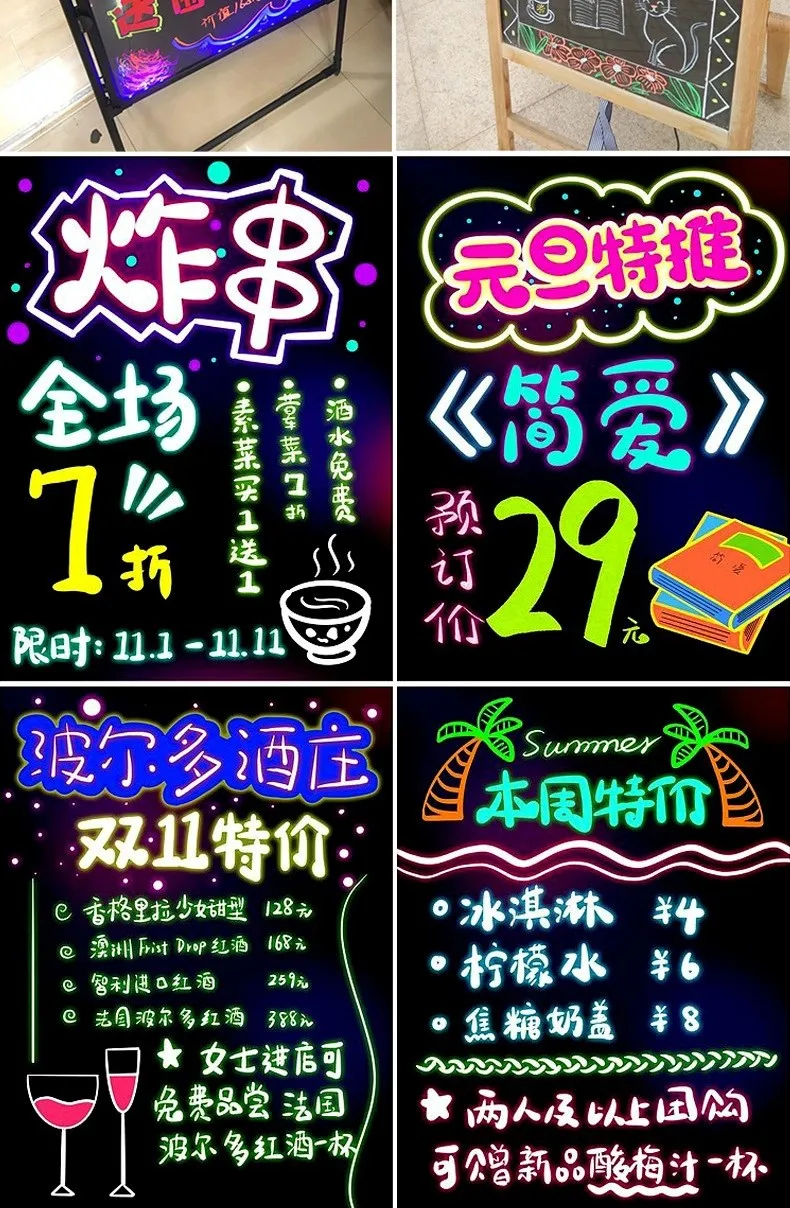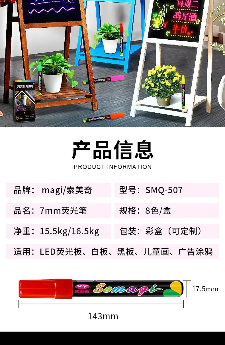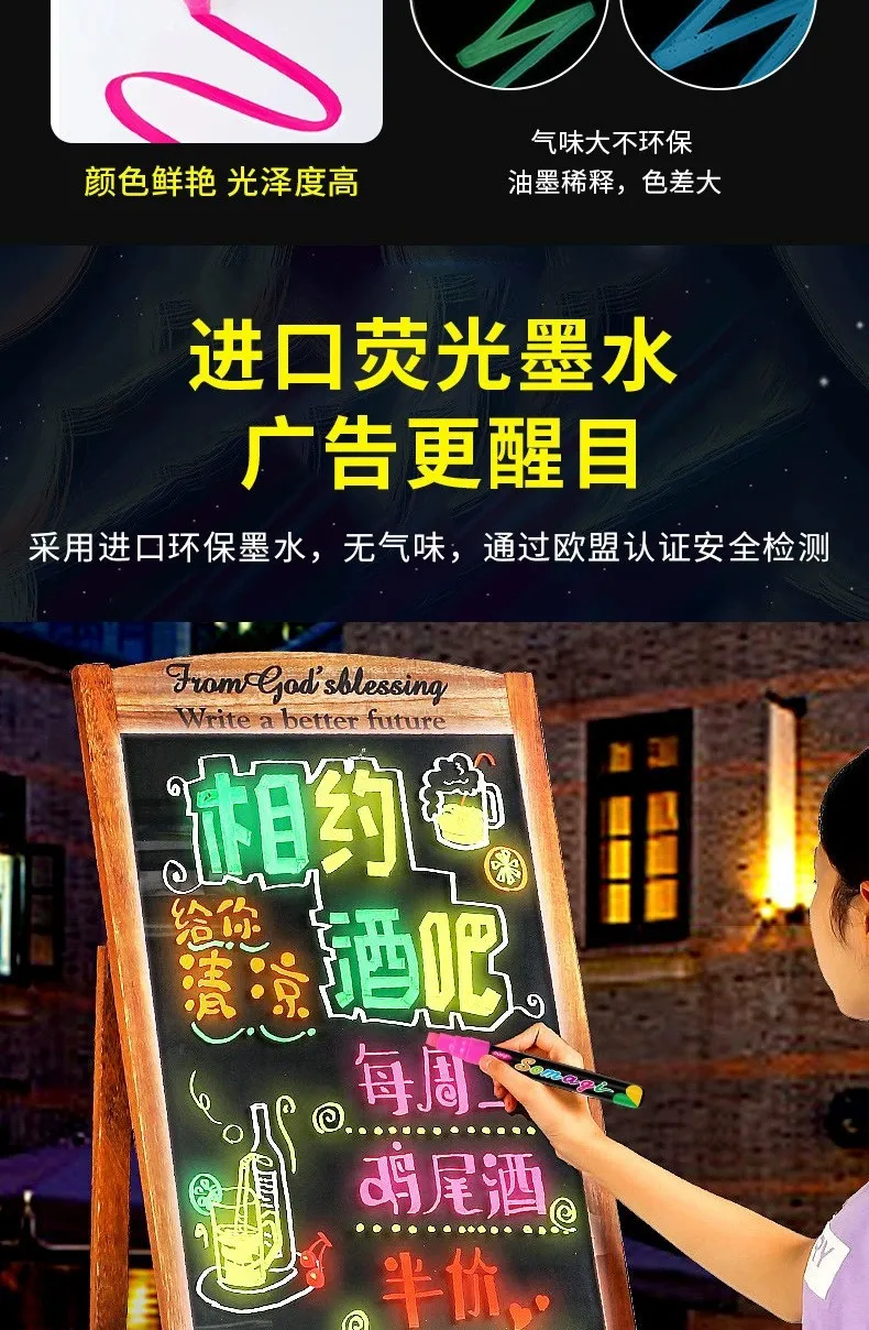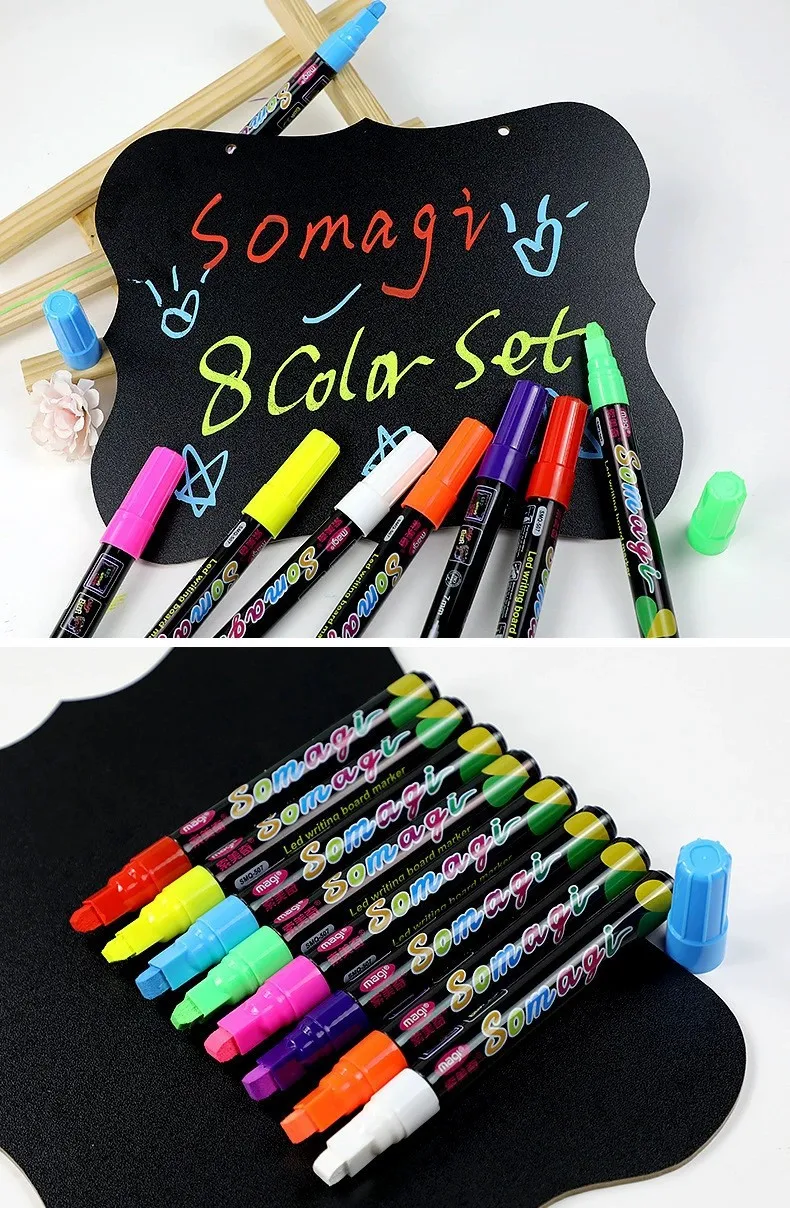 Roise 8 Colors/Set Fluorescent Pen Lamp Board Pen LED Pen Fluorescent Board Luminous Pen Advertising Pen Can Wipe Liquid Chalk