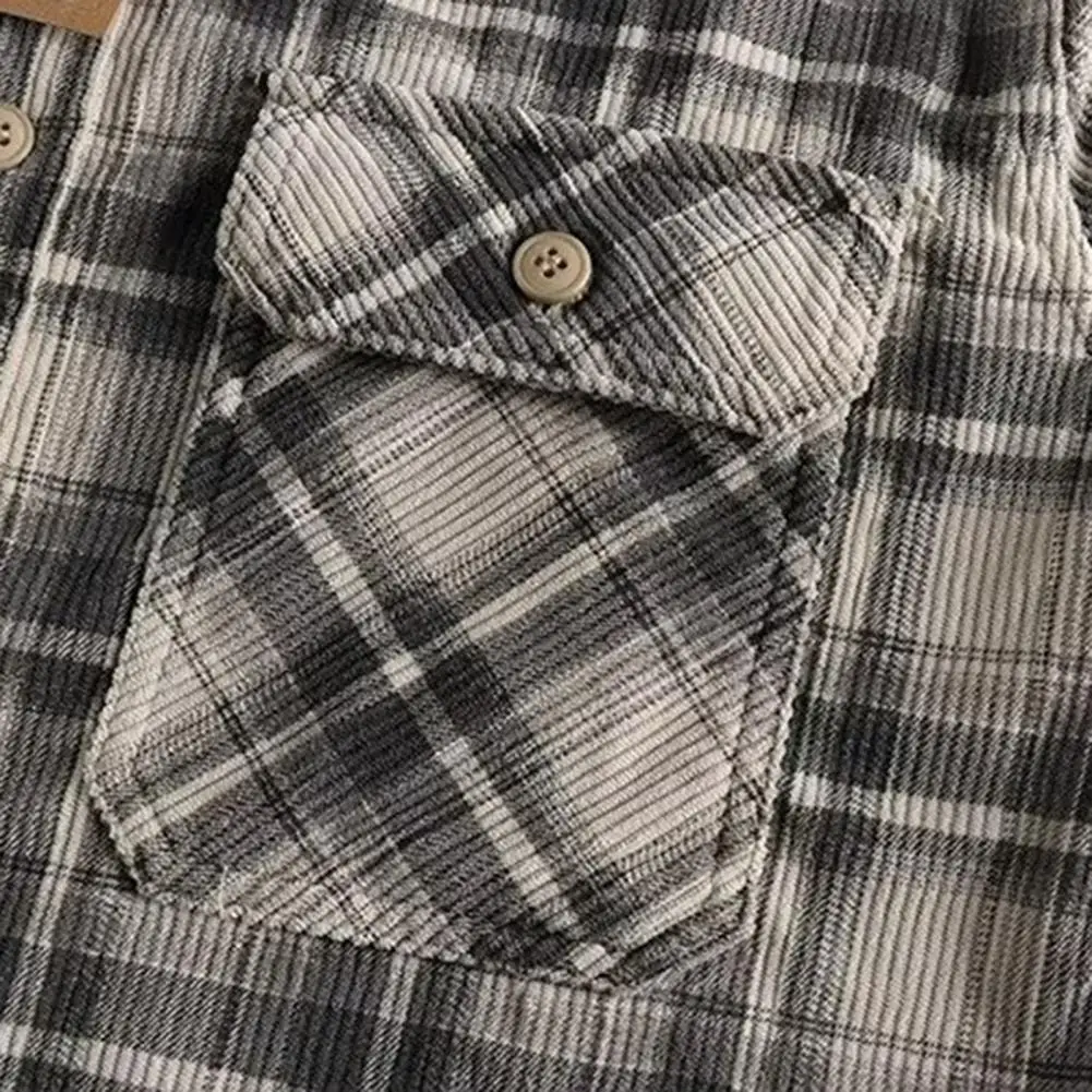 Single-breasted Shirt Plaid Print Men's Cardigan Coat Stylish Mid-length Formal Shirt with Turn-down Collar for Fall